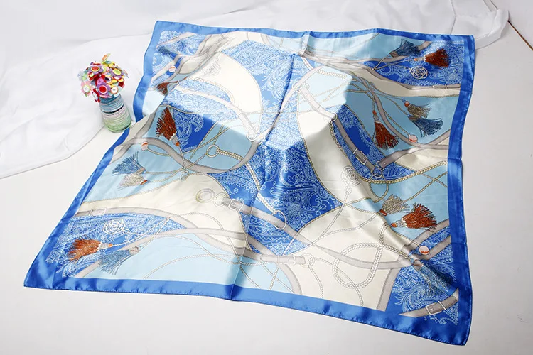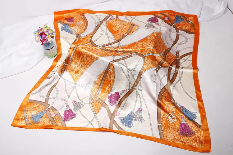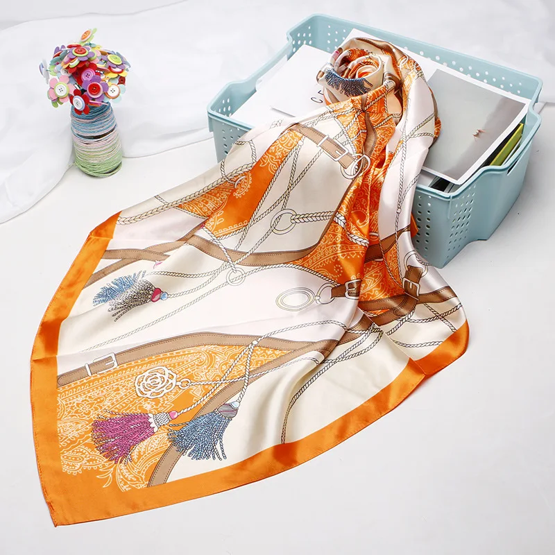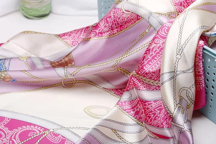 Квадратные шарфы, Женский солнцезащитный шелковый шарф с принтом цепей, Женская атласная длинная шаль двойного назначения, пляжное полотенце, шаль