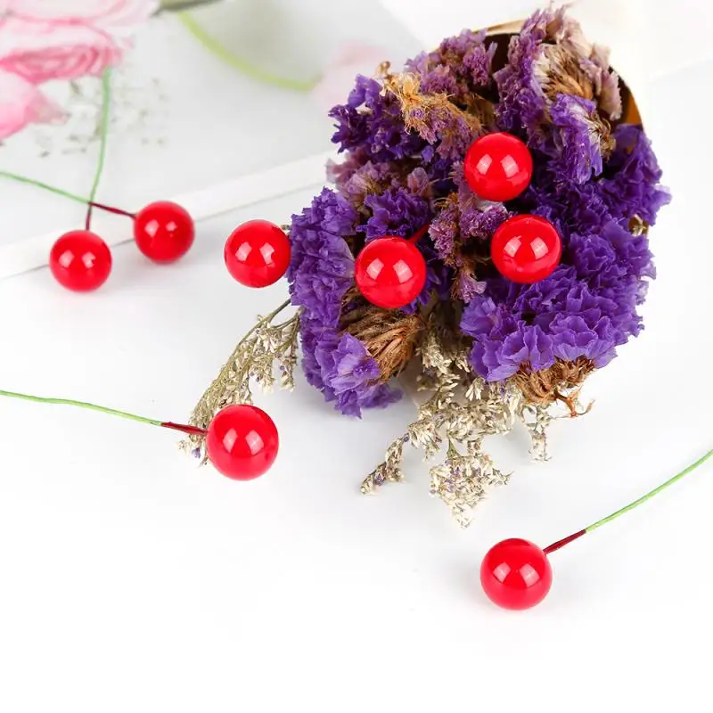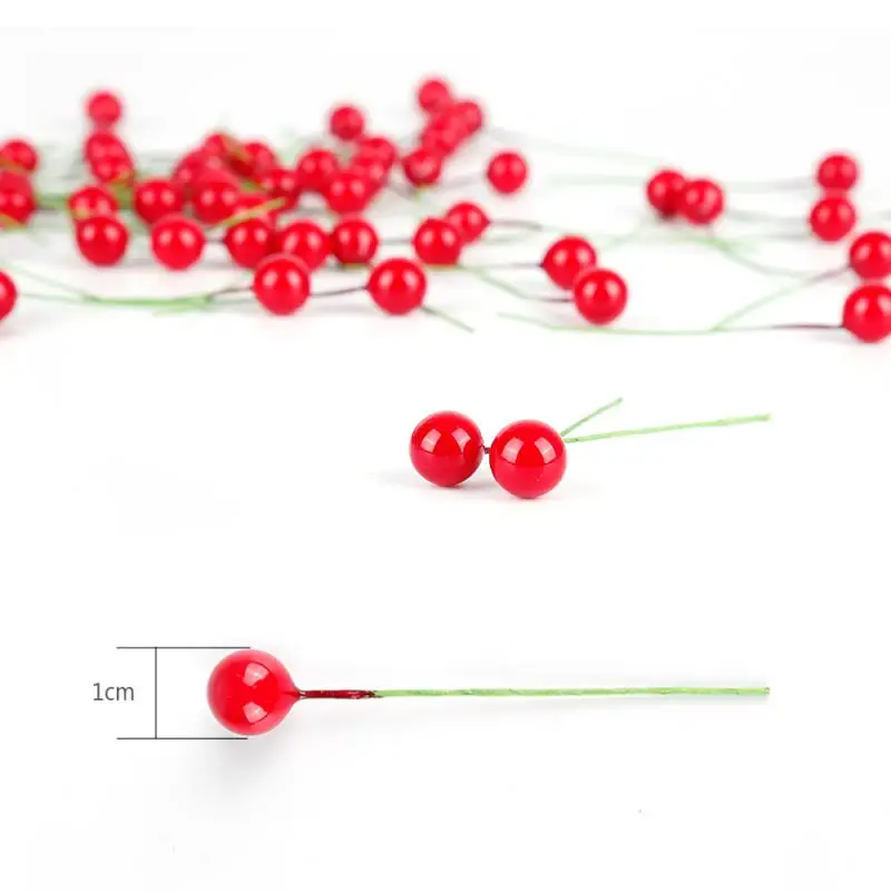 100 шт.лот мини искусственный цветок фрукты тычинки вишня Рождество пластиковые жемчужные ягоды для свадьбы DIY Подарочная коробка украшенный венок