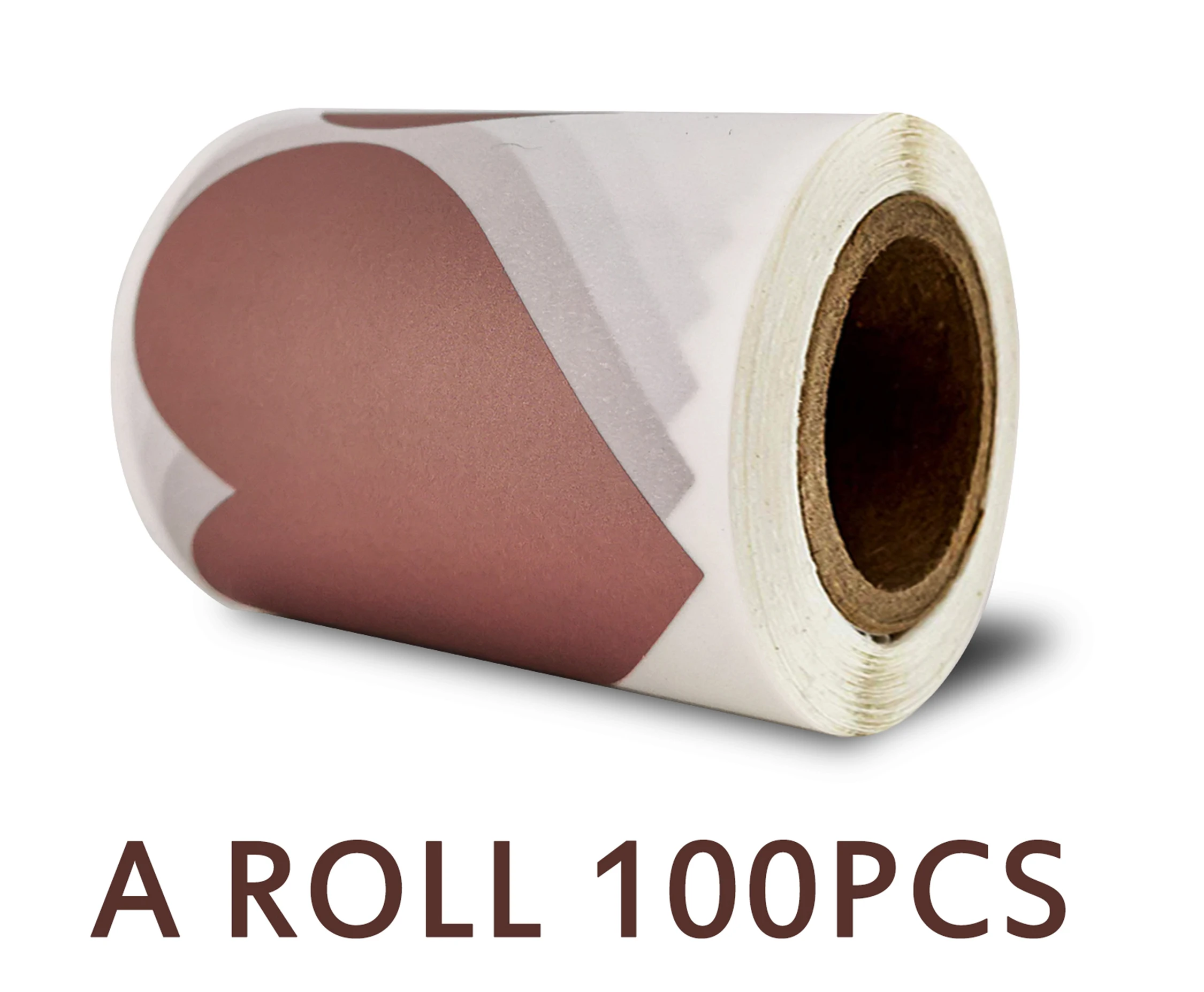 100 шт., наклейки в форме сердца, цвет розовое золото