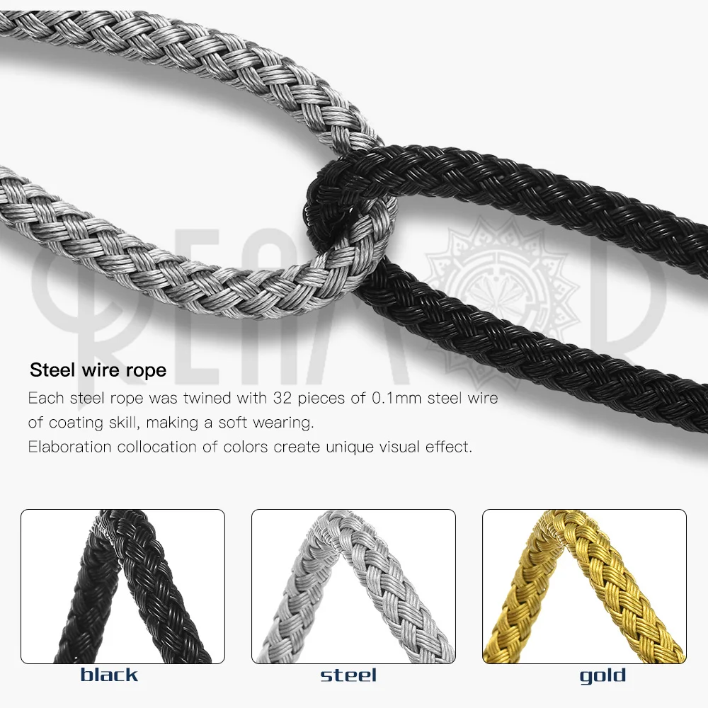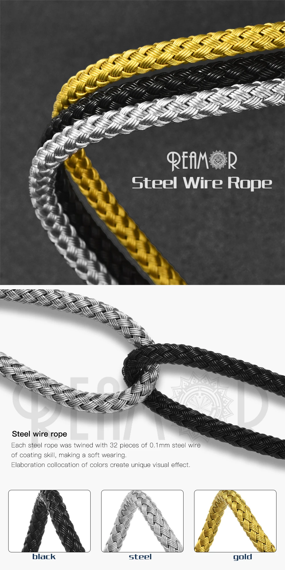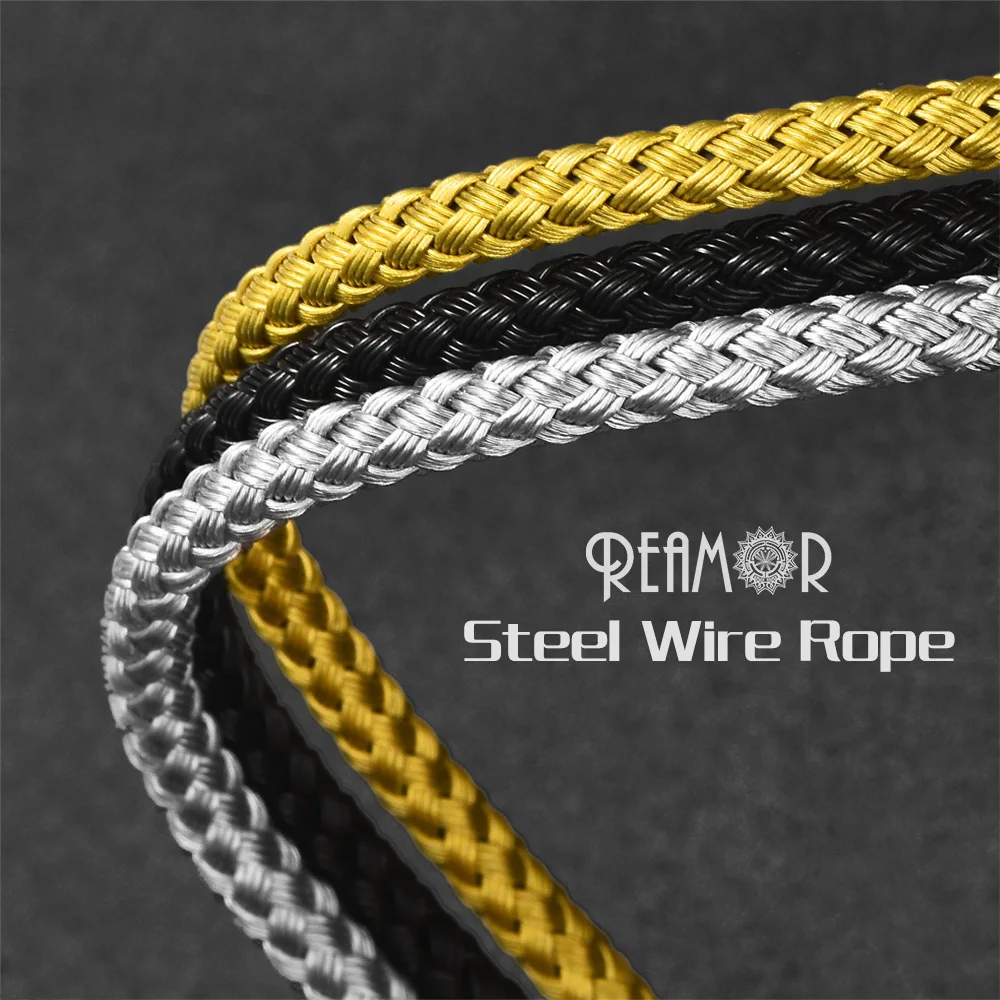Стальной трос REAMOR, черныеСеребристые шнуры из нержавеющей стали для изготовления браслетов, 4 мм5 мм