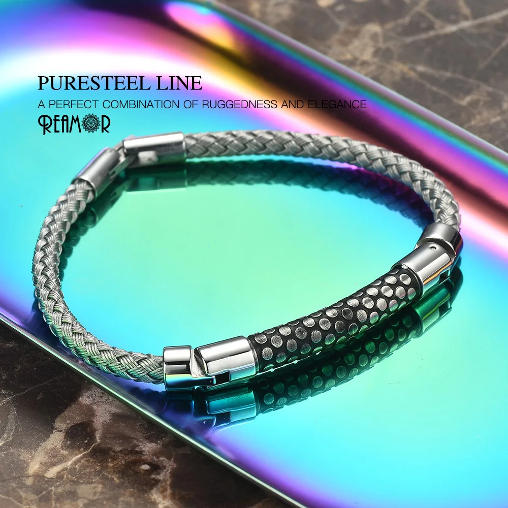 Мужской браслет ручной работы REAMOR, съемный браслет из нержавеюще...