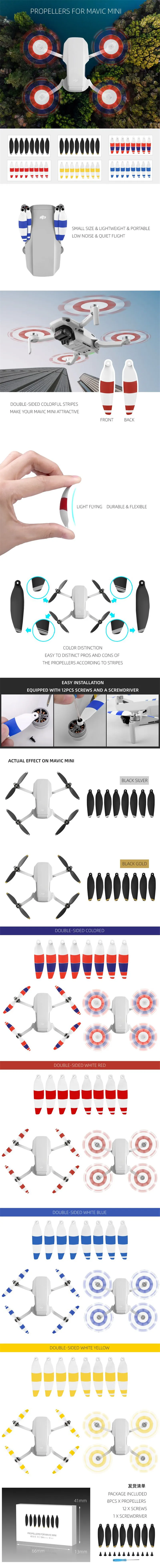 -Спецификация: пропеллеры 8 шт. + винты 12 шт. + отвертка 1 шт. -Низкий уровень шума, более длительное время полета -Светильник с хорошей производительностью и прочностью -Цветовое отличие, предотвращает неправильное крепление