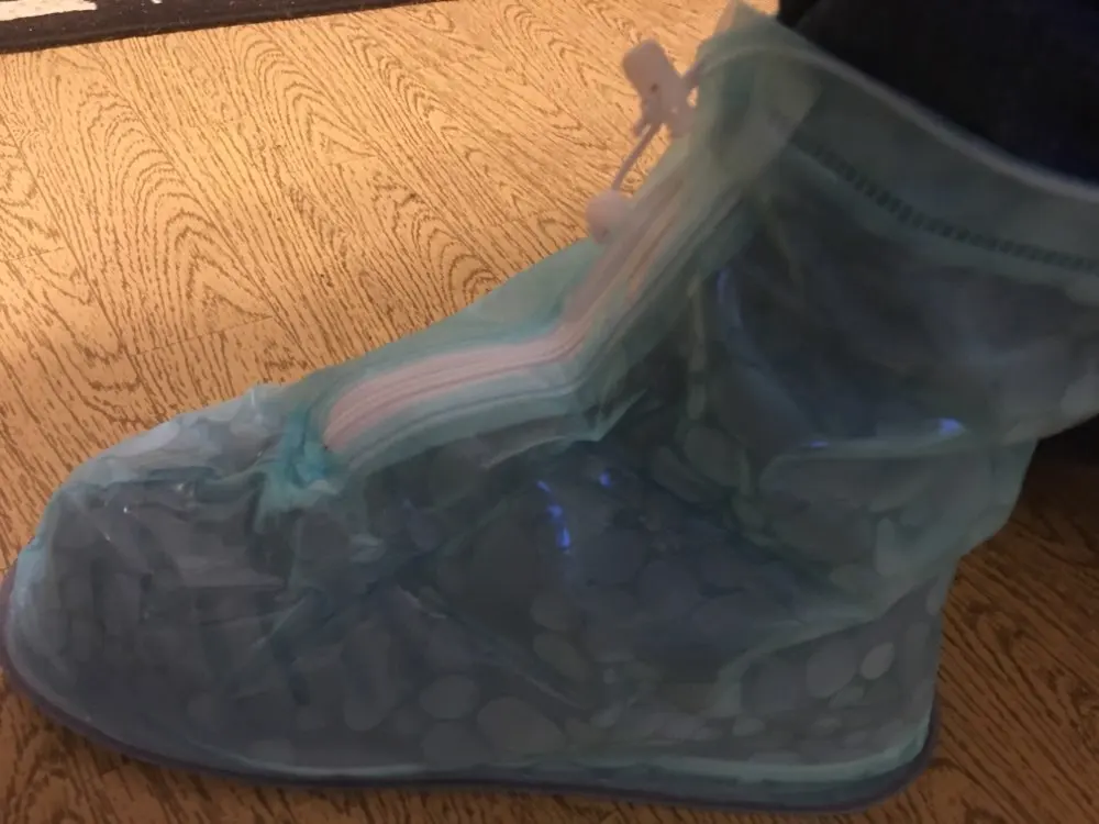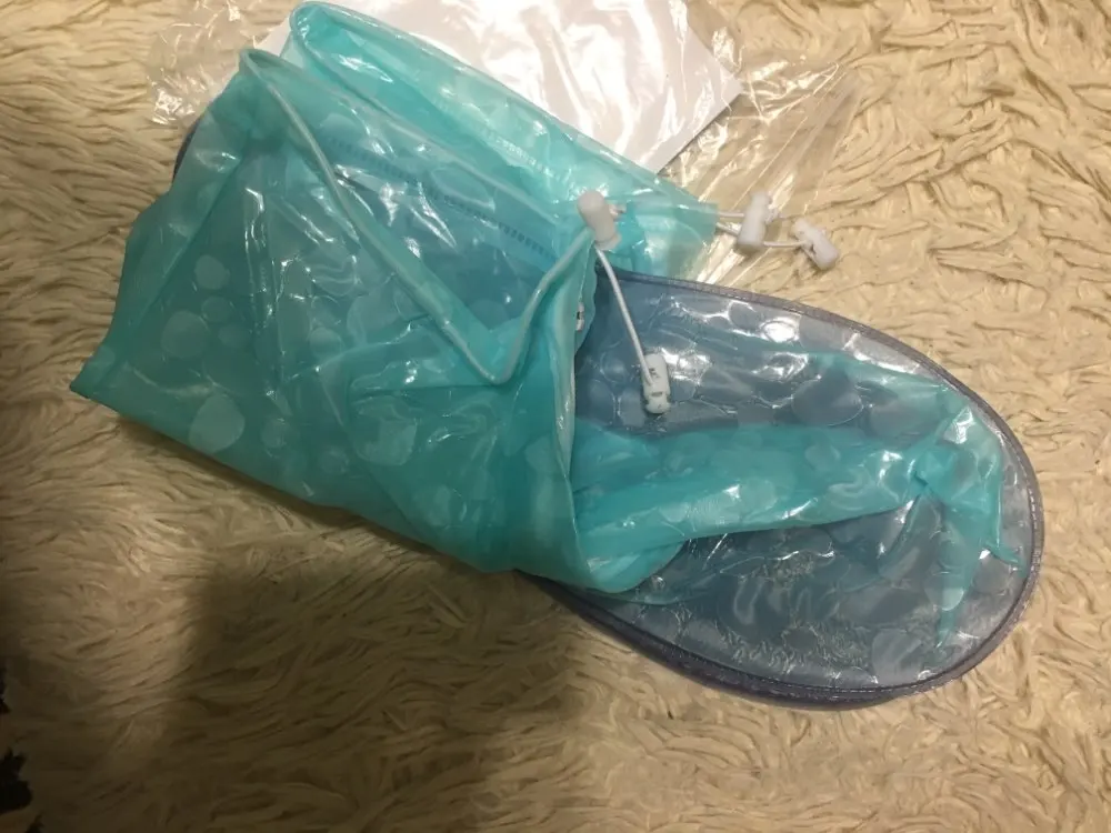 Посылка пришла на Новую почту за 16 дней. Товар полностью соответствует описанию. На мой 41р. подошел размер XL. По таблице так и показано - XL для размеров 41-42, соответствует. Клеенка плотная, подошва рифленая, на молнии, с затяжками. Вес 150 г. Удобно носить в сумке. Хорошая задумка. Довольна. Рекомендую. Планирую чаще использовать для весенне-летнего сезона - беречь обувь.