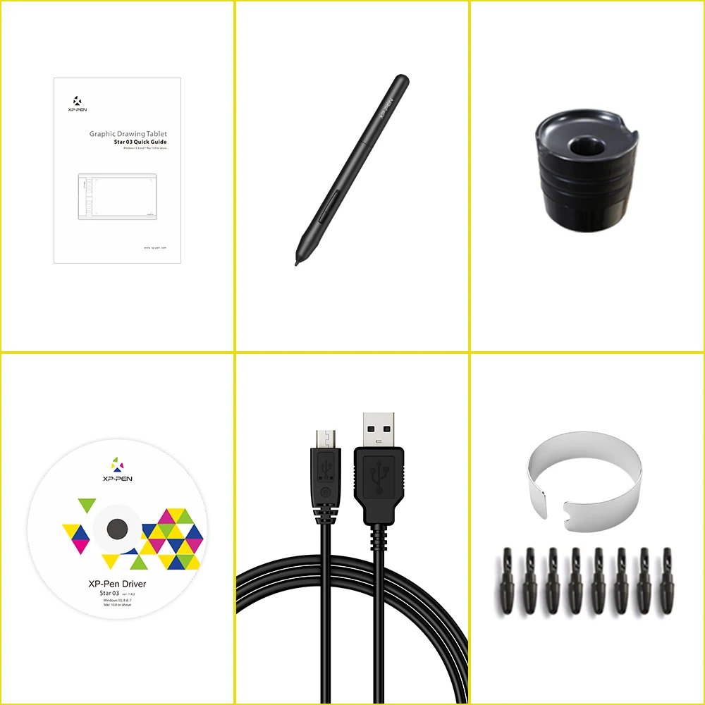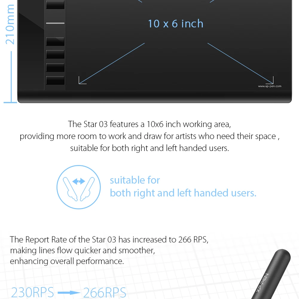 XPPen Star03 V2 графический планшет с цифровой графикой 10x6 дюймов для начинающих с 8 Экспресс-клавишами и стилусом P01