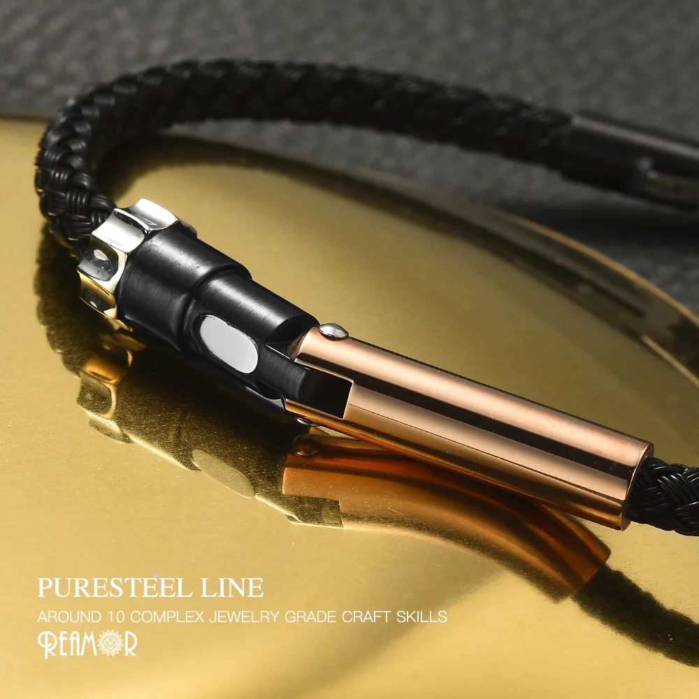 REAMOR роскошные золотые конструкционные дизайнерские браслеты рыцарь черный 316l проволока из нержавеющей стали DIY браслет для мужчин и женщин Простые Ювелирные изделия