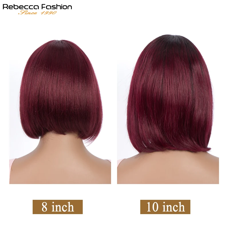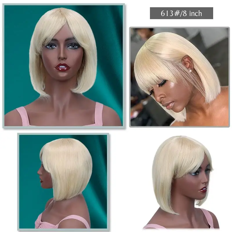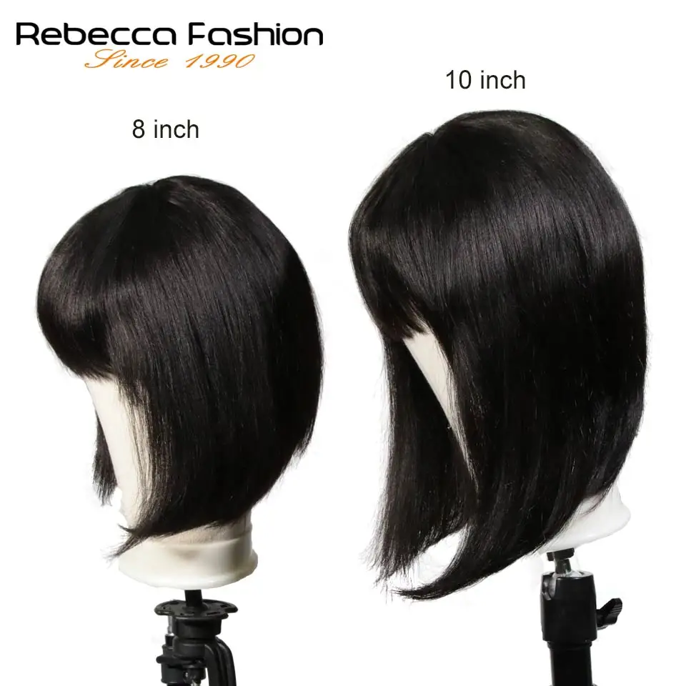 Парик короткий боб с челкой, прямые бразильские парики из натуральных волос Реми для женщин, без клея, полностью машинное изготовление, дешевые парики из натуральных волос