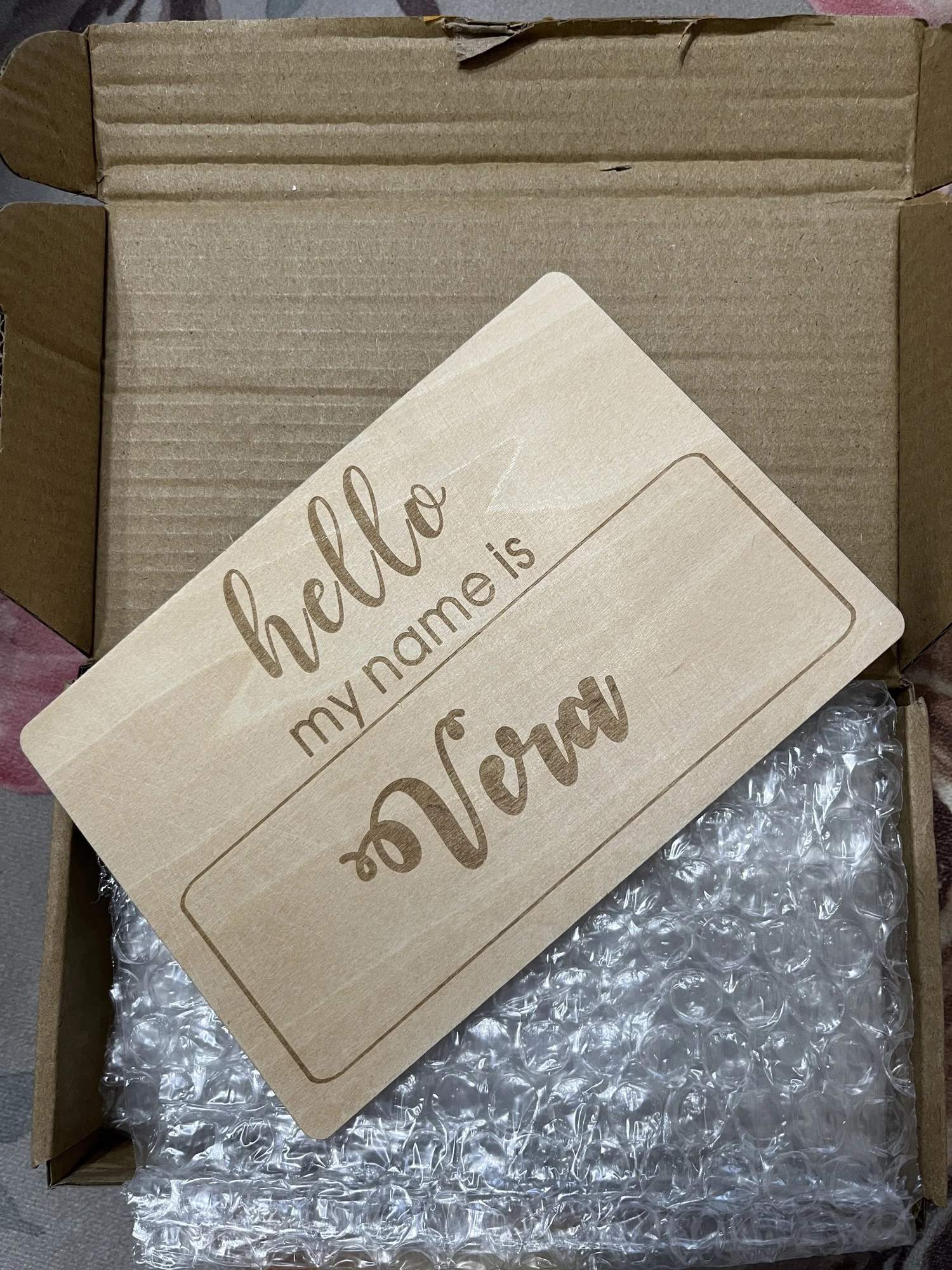 Благодарность продавцу за отличную упаковку товара, всё надёжно было упаковано- и пупырки, и коробки, и верхняя упаковка. Продавец общительный, на все вопросы отвечал, отправил макет таблички с выбранным именем, чтоб я подтвердила его. Сам товар очень понравился, всё гладко, без зазубрин. Рекомендую товар и продавца. Спасибо огромное!