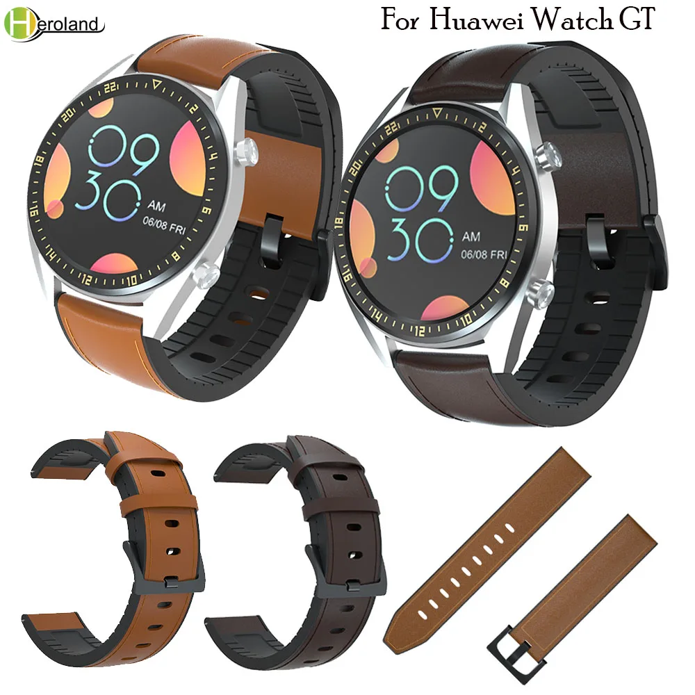 22 мм ремешок для часов Силиконовый + кожа для Huawei Watch GTGT 2 быстросъемный ремешок для Samsung Gear S3Galaxy 46 мм браслет