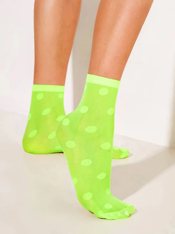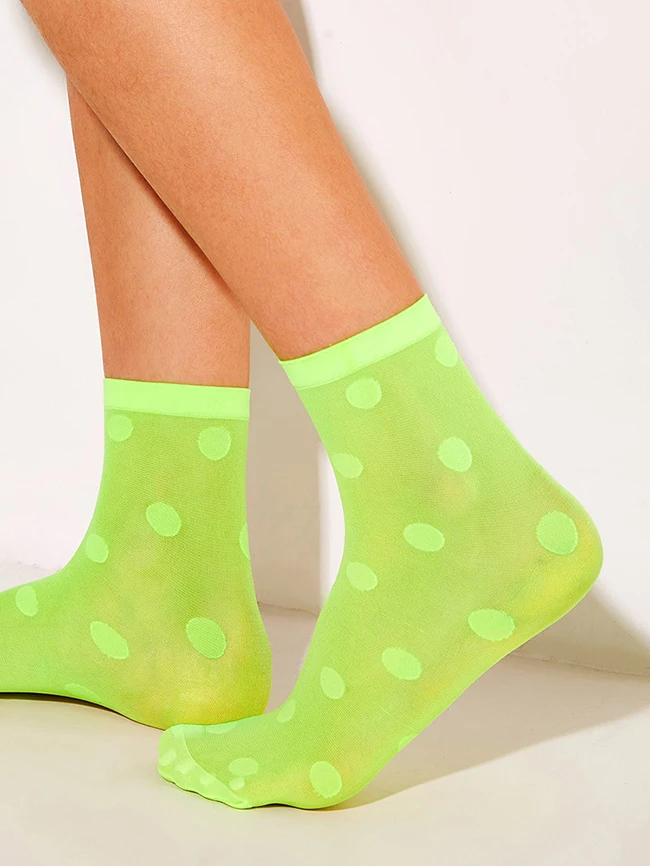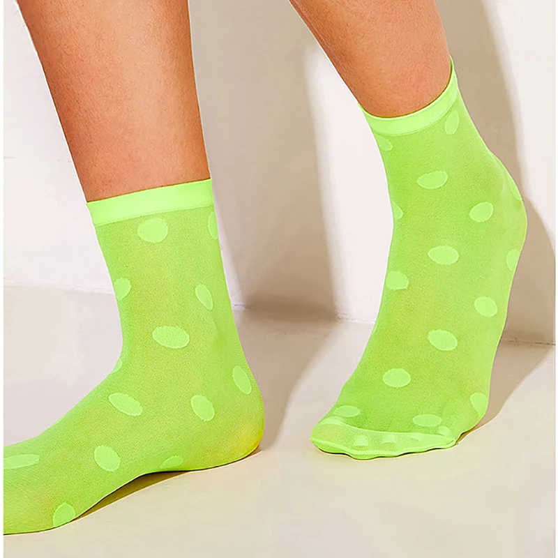 Женские Дышащие флуоресцентные носки в горошек. Женские тонкие прозрачные шелковые носки в Тонкий горошек, женские Чулочные изделия