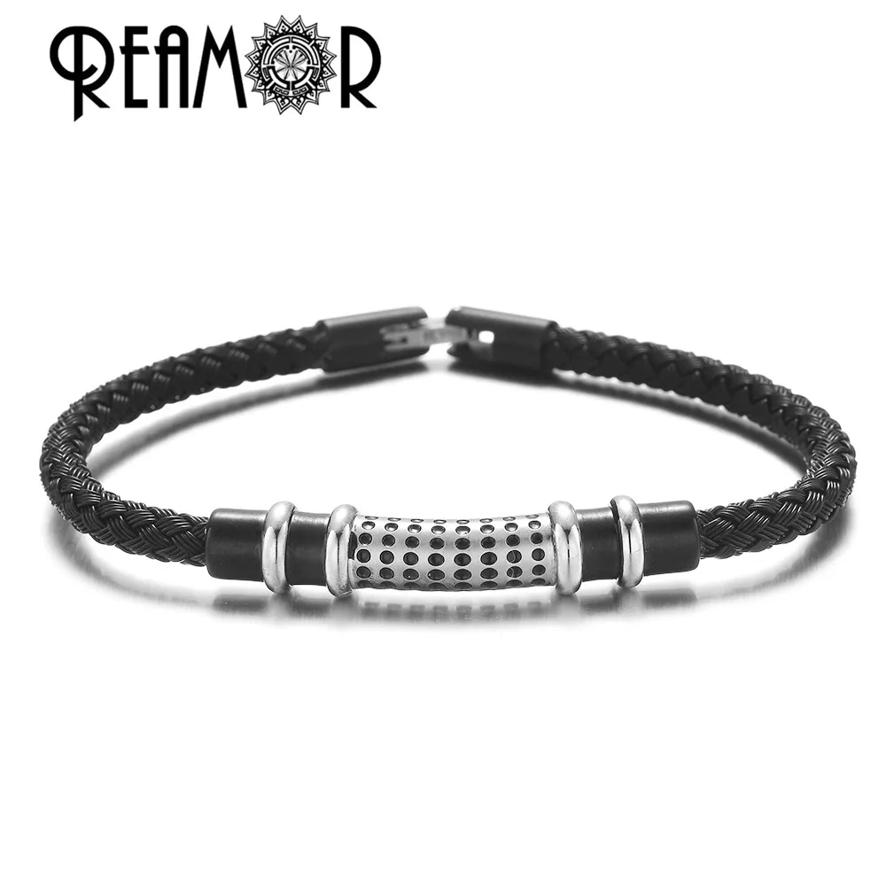 Мужской браслет ручной работы REAMOR, съемный браслет из нержавеюще...