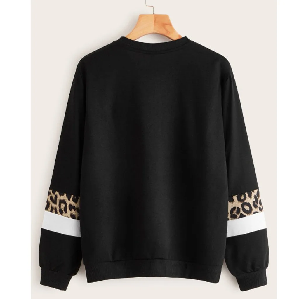 Свитшот женский хлопковый с леопардовым принтом и круглым вырезом