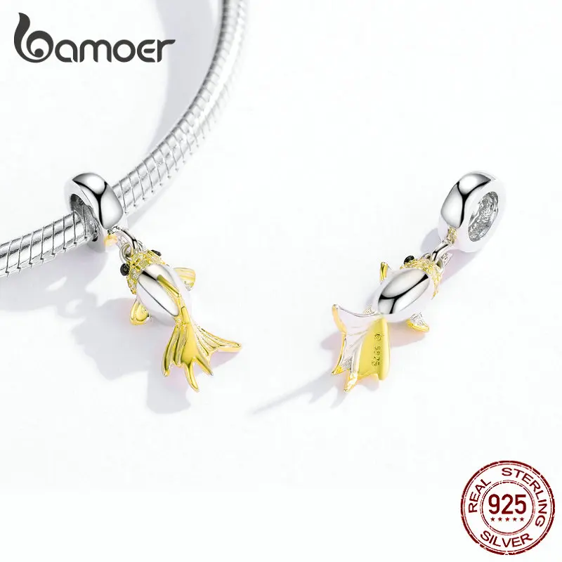 Женский браслет из серебра 925 пробы bamoer, подвеска из серебра пробы с подвеска рыбий хвост, ювелирные изделия сделай сам, BSC127