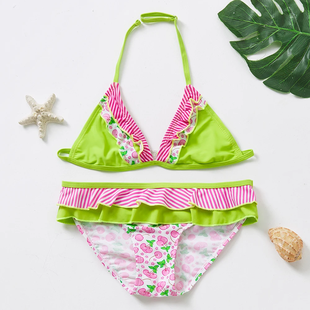 Купальник-бикини для девочек От 7 до 16 лет, купальный костюм с оборками, детский пляжный Wear-ST275