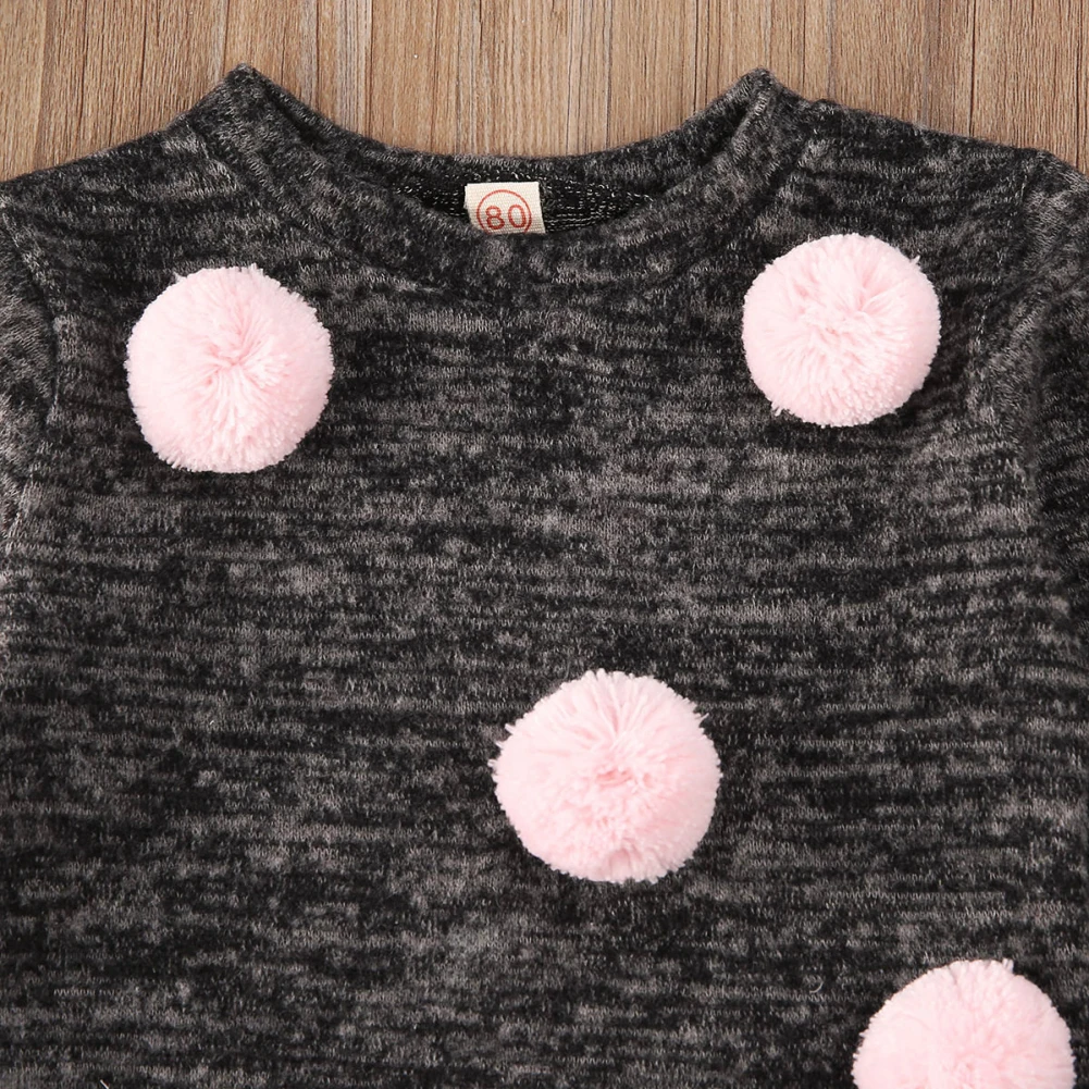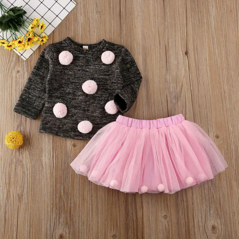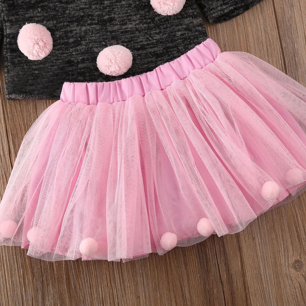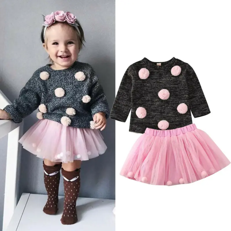 Осенне-зимний комплект одежды для маленьких девочек 2020 года, однотонный пуловер с шариками, свитер и юбка из тюля