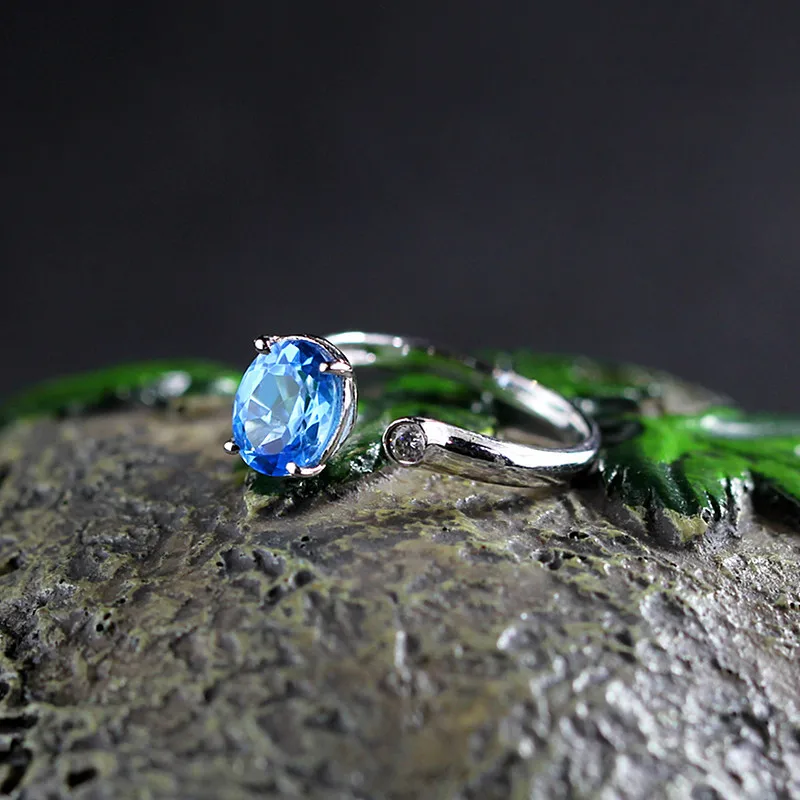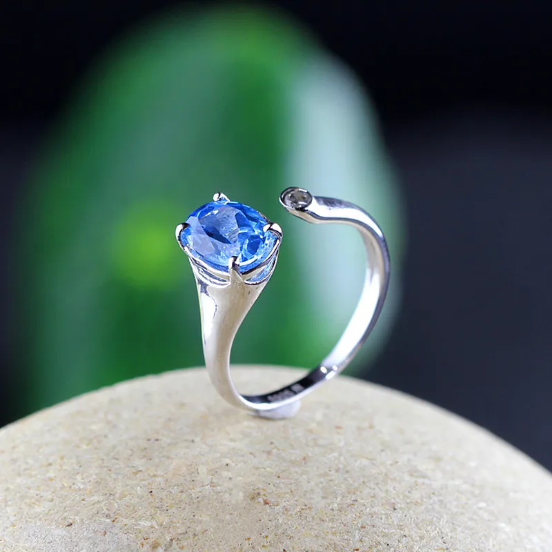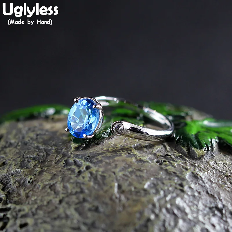 Роскошные кольца Uglyless с натуральным голубым топазом для женщин овальные ограненные драгоценные камни Открытые Кольца настоящая женская серебряная Драгоценная бижутерия R972