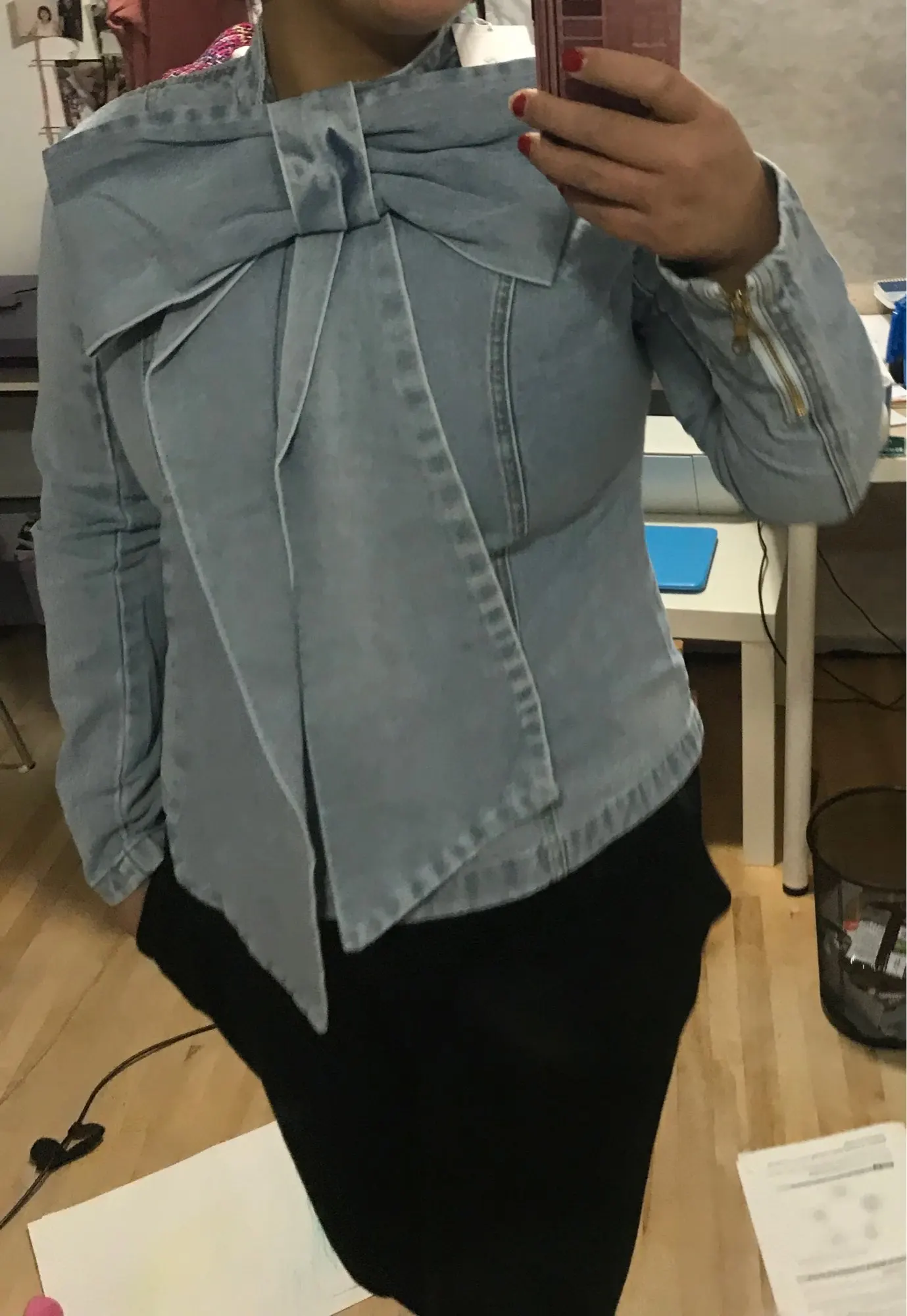 Несколько дней думала брать или нет и какой размер , отзывов почти не было . В итоге взяла и не пожалела . Продавец помог с размером . На бюст 93 и талию 75 L по размеру ! Качество плотный джинс , на осень-весну, Имеются плечики . Бант Свисает не очень , я слегка пришила чтобы стоял как на картинке . Доставка около месяца . Мороший магазин и товар , беру не первый раз .
