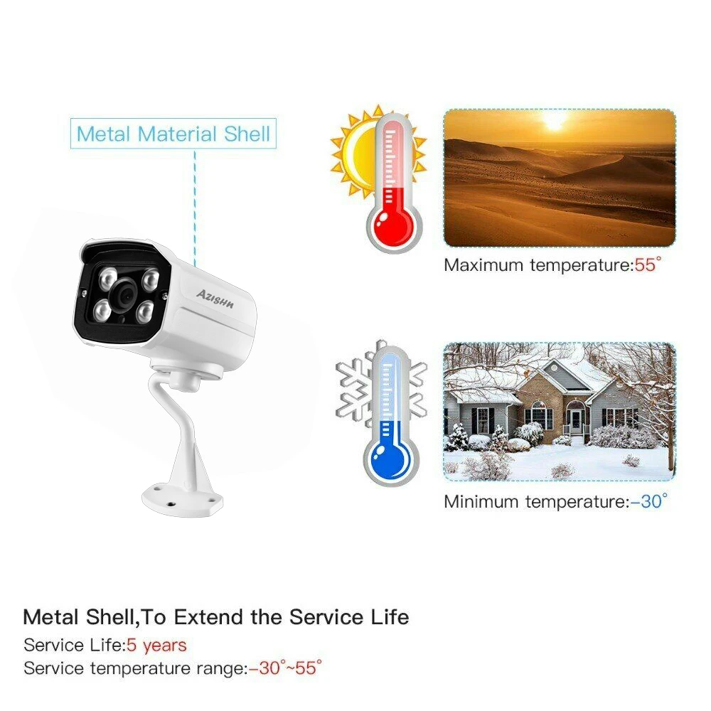 IP-камера AZISHN H.265AI, 5 МП, 12, 7 дюймов, SC5239, металлическая водонепроницаемая IP66 камера видеонаблюдения с 4 ИК-светодиосветодиодный, 2 МП3 Мп, P2P