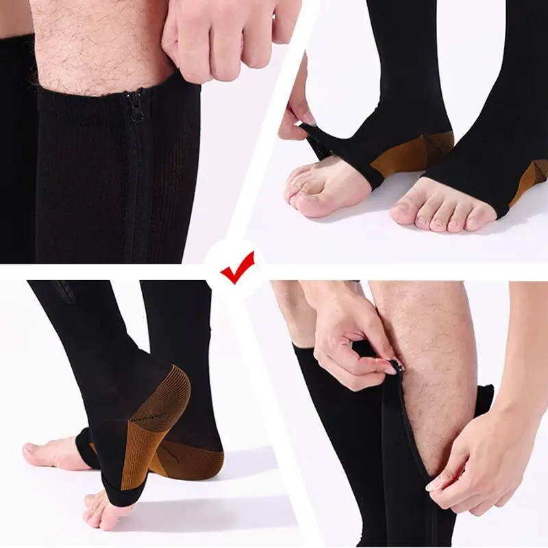 Носки компрессионные унисекс, высокие эластичные, с молнией, с открытым носком, для мужчин и женщин