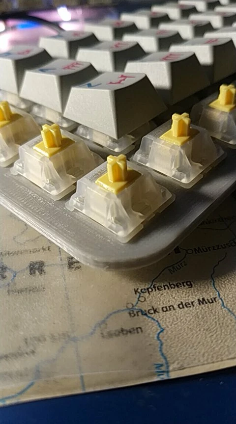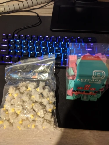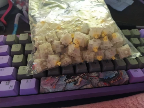 Приехали свитчи через Пятерочку за крайне малый срок (чуть больше недели). По самим свитчам - что тут говорить... Это те самые желтые Гатероны, которые отличаются своей идеальной плавностью даже без смазки. Но все же без смазки свитчей присутствует шуршание стема об хаузинги и слышен пинг пружины, воблинг также присутствует, пусть и не такой большой, как на обычных или же оптических Гатеронах. Рекомендую вам все же смазать их, в обмен же вы получите очень тихие переключатели с крайне плавным ходом. Продавцу респект за оперативность, а также за приятный подарок в виде 6.25U кейкапа из PBT с сублимацией :)