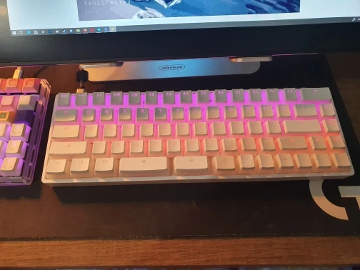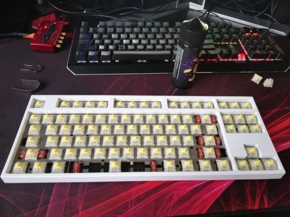Что тут сказать, это Gateron Yellow - те же Cherry MX Red, только вероятность получить песка минимальна. Как показывает практика обычная смазка делает с клавиатурами чудеса. Звук стал превосходный, тактильный ход, лично для меня, стал приятнее. Играя в csgo более 10000ч (опечатки здесь нет), могу сказать, что этот вариант наиоптимальнейший. Так же очень приятна печатать и в-целом работа с клавиатурой - одно удовольствие. Брал заказ именно у этого продавца т.к. он предлагает наименьшую цену (без учёта скидок и купонов) и кладет кейкапы (по крайнее мере на момент заказа). Кейкап по ощущениям PBT с ABS. Не знаю как, но продавец нутром почувствовал цвет моей клавиатуры, и отослал именно кейкап того цветового решения , который вписывается наиболее удачно. Кто-то платит более 8$ за тот же кейкап и это очень приятно, так сказать, респект продавцу. Тайпинг можно послушать здесь: www.инстаграм.com/p/CFcrq_Eqba6/ (инсту и всякие http допишите сами). Рекомендую!