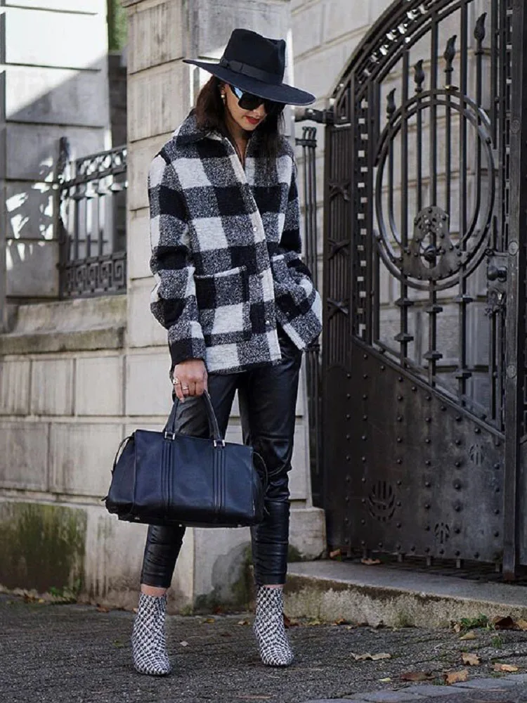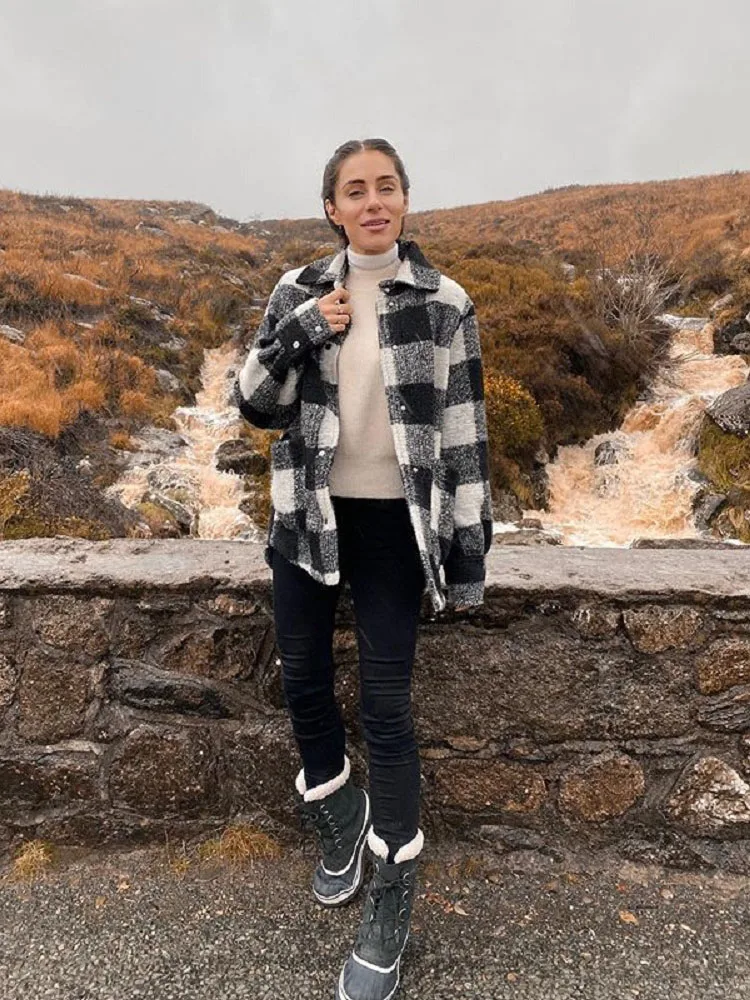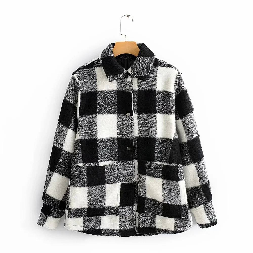 Винтажная Клетчатая Шерстяная Куртка, модная Женская Осенняя Толстая клетчатая рубашка, куртка, элегантные женские пальто с отложным воротником