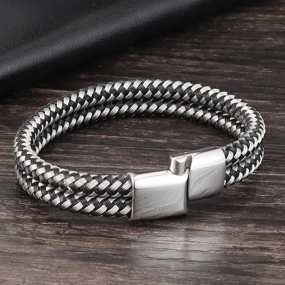 Мужской кожаный браслет в классическом стиле, Комбинированный браслет из нержавеющей стали с чернойстальной пряжкой вечерние, подарок