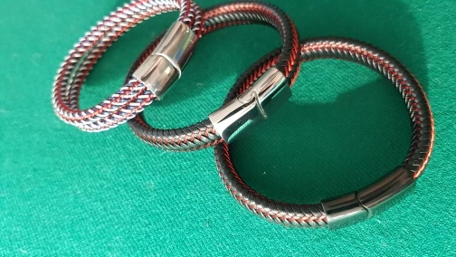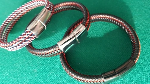 Замок магнит, изнутри обработон плохо, при застегивании браслета, чувствуется явное сопротивление. Ранее покупал подобные браслеты, было качественнее. Также одна из двух частей браслета, чуть длиньше.