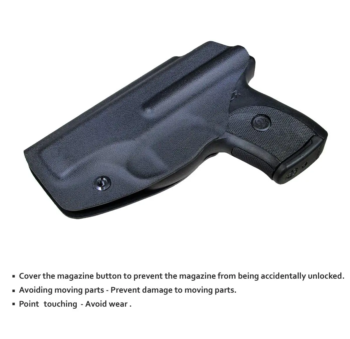 US .08 ”KYDEX ручная работа: легкий, прочный, прочный, влагостойкий, моющийся, обеспечивает комфорт и уверенность в любой ситуации. Кобура Ruger LC9 охватывает весь корпус, эффективно предотвращая пот и избегая зажимов, можно безопасно и безопасно использовать.