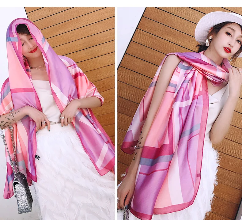 Классические женские шелковые шарфы, женская шифоновая накидка, женский пляжный шарф, парео, бандана, женские шарфы