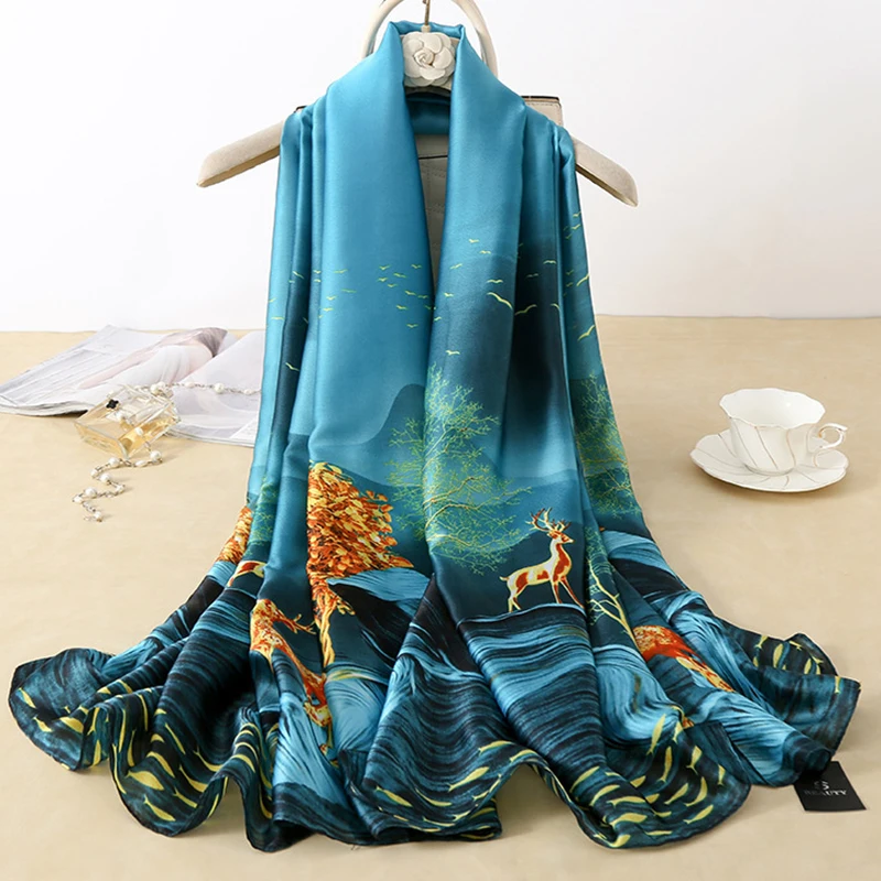 2020 роскошный бренд, женская шелковая ткань, летний шарф, Дизайнерские шарфы, Женская пляжная бандана