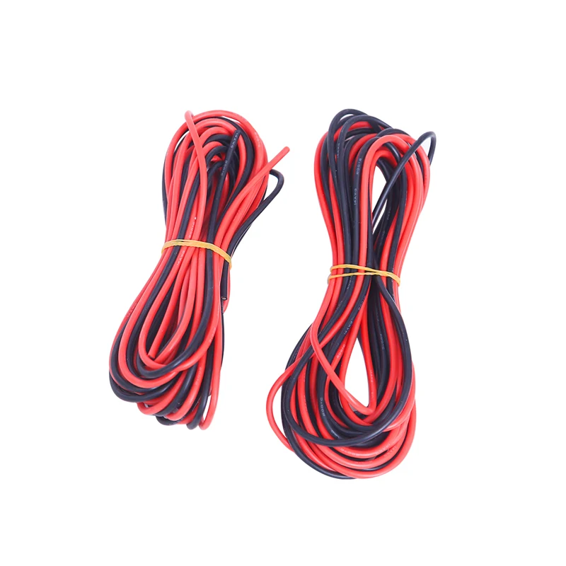 Мягкий термостойкий силиконовый кабель, 8, 10, 12, 14, 16, 18, 20, 22, 24 AWG, 10 м (5 м, красный и 5 м, черный цвет)