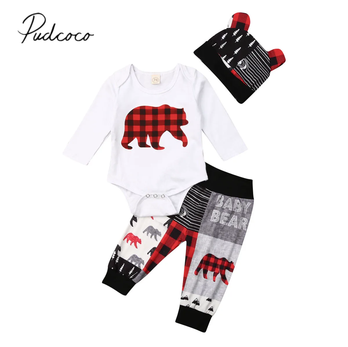 3 шт., детский комплект одежды для новорожденных, с принтом медведя