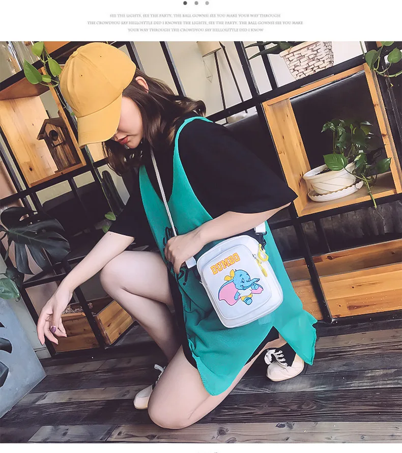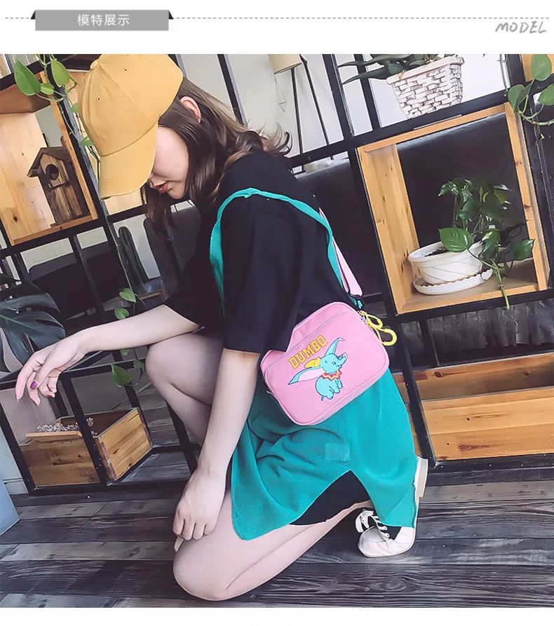 Холщовая сумка-мессенджер Disney Дамбо с мультяшным рисунком, женская модная сумочка, Подарочная сумка для хранения, косметичка, кошелек, сумка для покупок на плечо