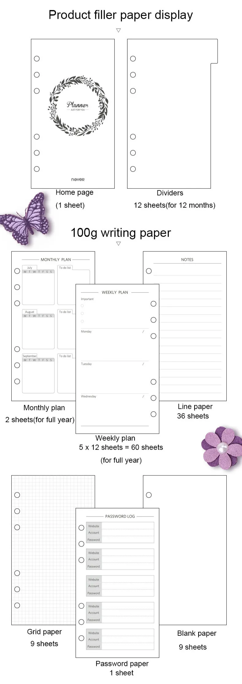 Ежедневник-органайзер, ежемесячный недельный, для спиральных блокнотов и журналов, на 2022 год