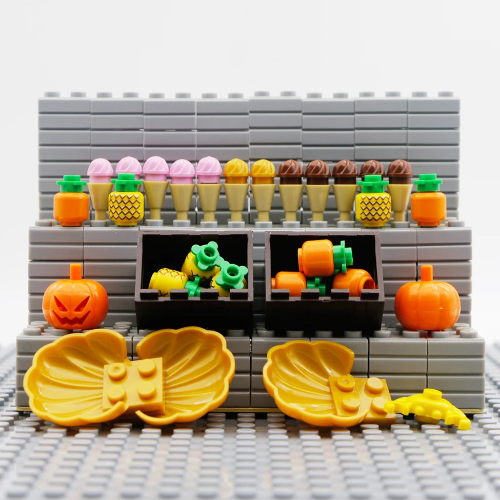 Искусственная еда, лед, ананас, тыква, Морская ракушка, игрушки, друзья, кухня, MOC, строительные блоки, фигурки, детали для дома