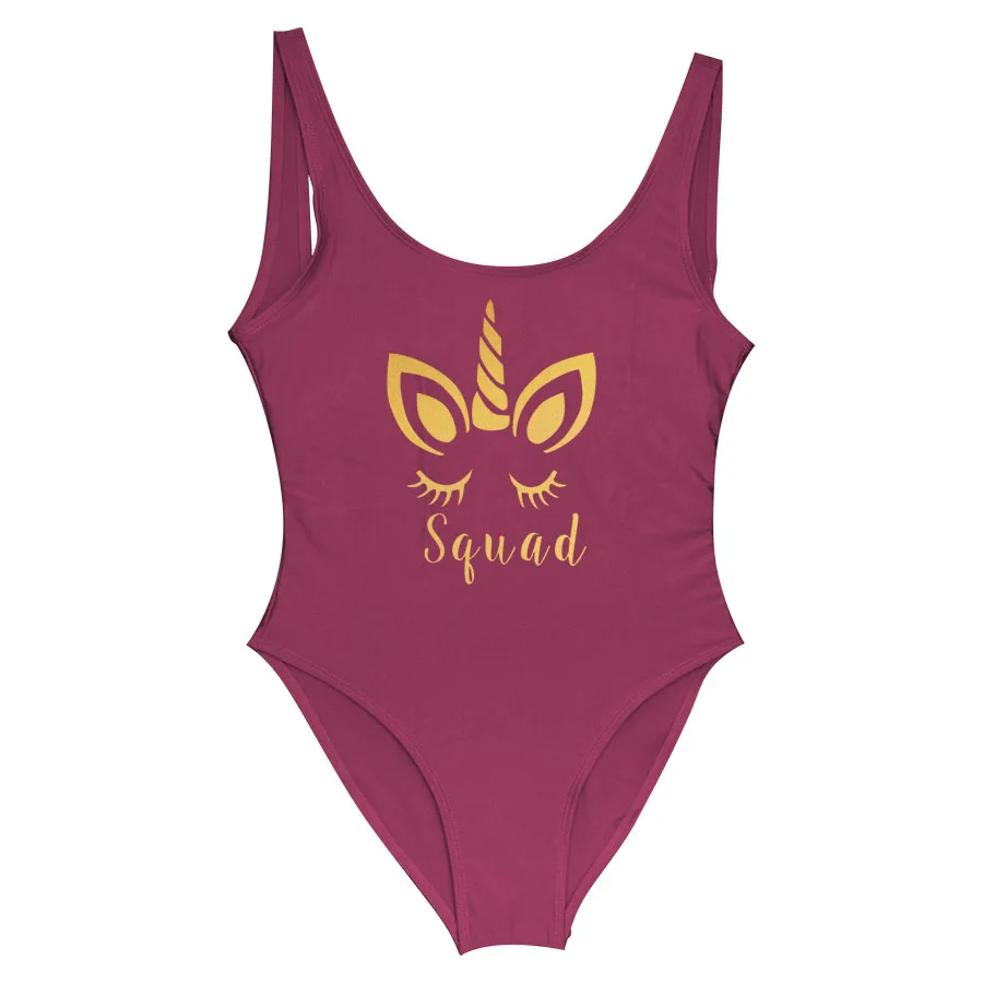 Купальник с золотым принтом единорога для невесты и отряда, купальник для девичвечерние, купальник для подружки невесты, слитный купальник для подружки невесты