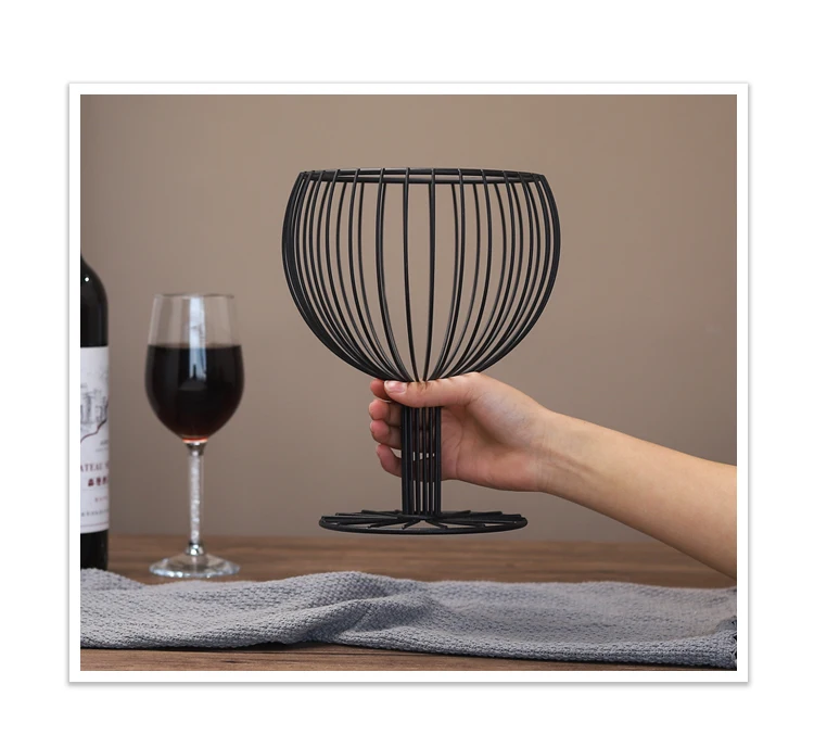 Креативная корзина из кованого железа в скандинавском стиле, в форме бокала для вина, фруктов закрытый сеткой слив, многофункциональное простое украшение для дома, для хранения фруктов