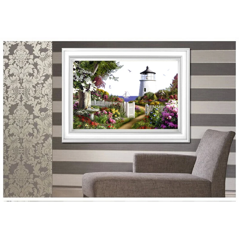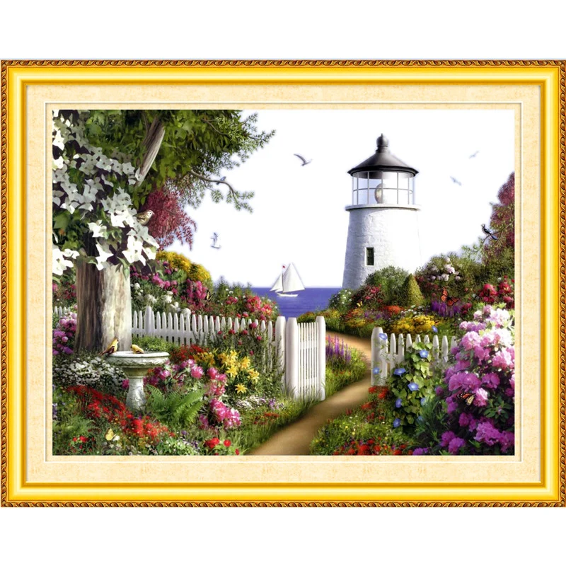 Набор для вышивки крестиком Dmc, наборы для вышивки, маяк, садовый пейзаж, 76x59 см, холст с принтом, домашний декор, хлопковая нить