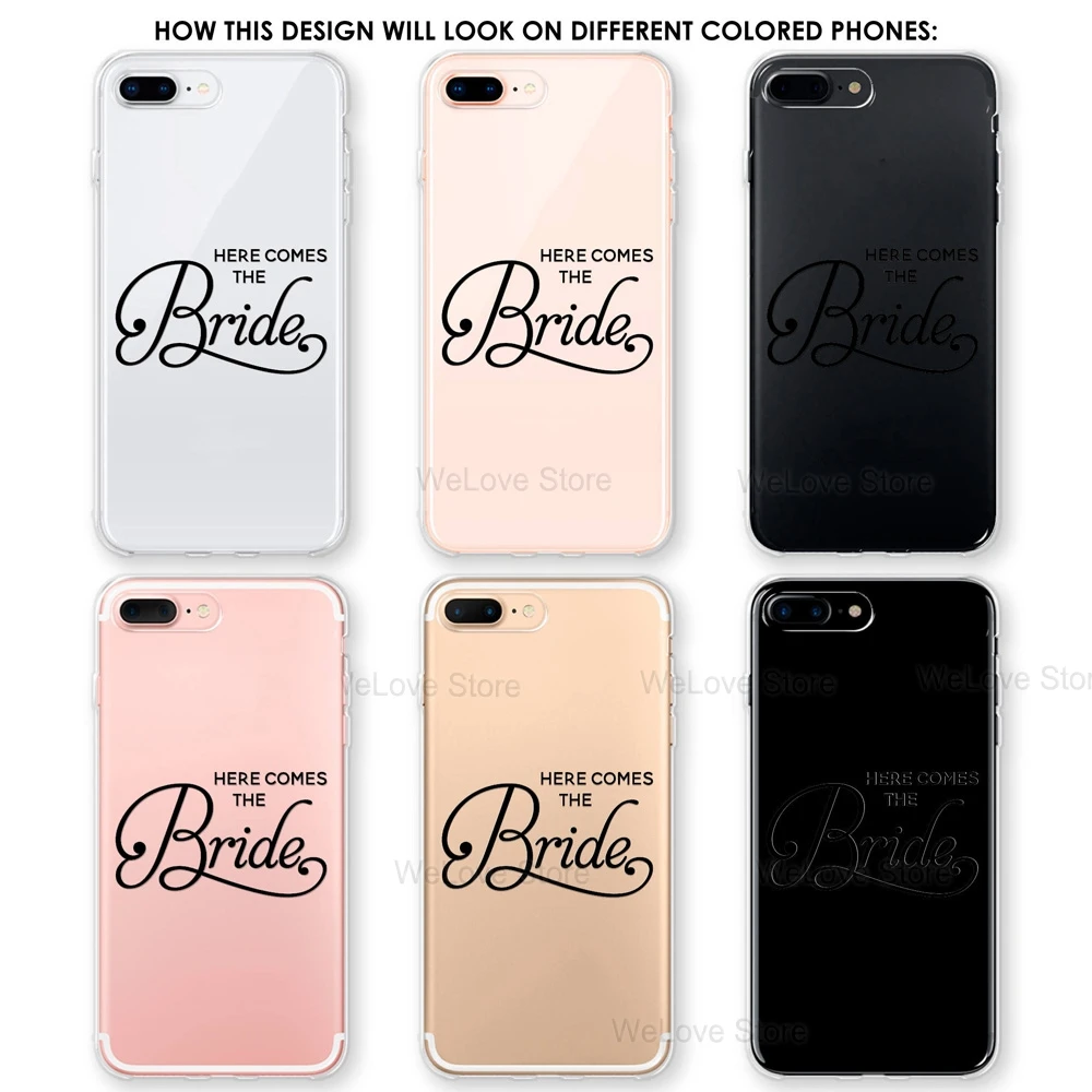 Чехол для невесты для iPhone 13 12 mini 11 Pro Max XS XR X 8 Plus 7 SE 2020 6S, прозрачный резиновый чехол для помолвки и свадьбы
