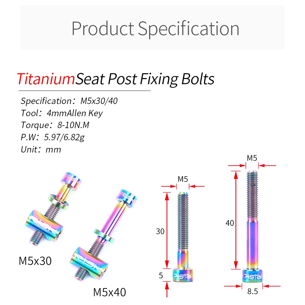 Мотоциклетная труба для сиденья велосипеда, M5x30 M5x40, с шайбой из титанового сплава