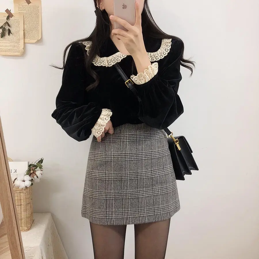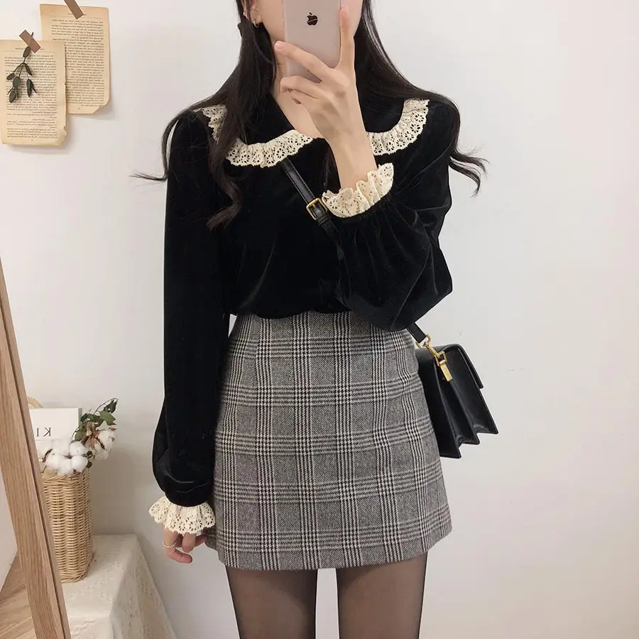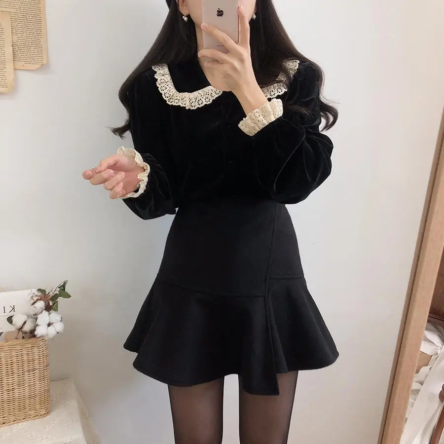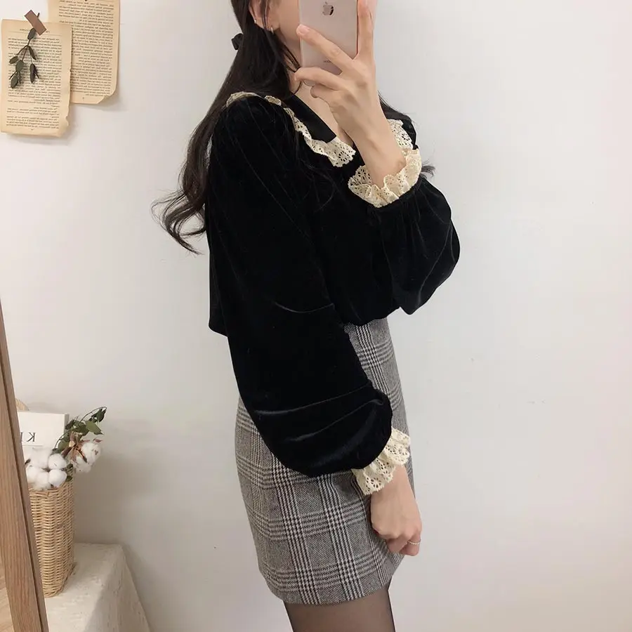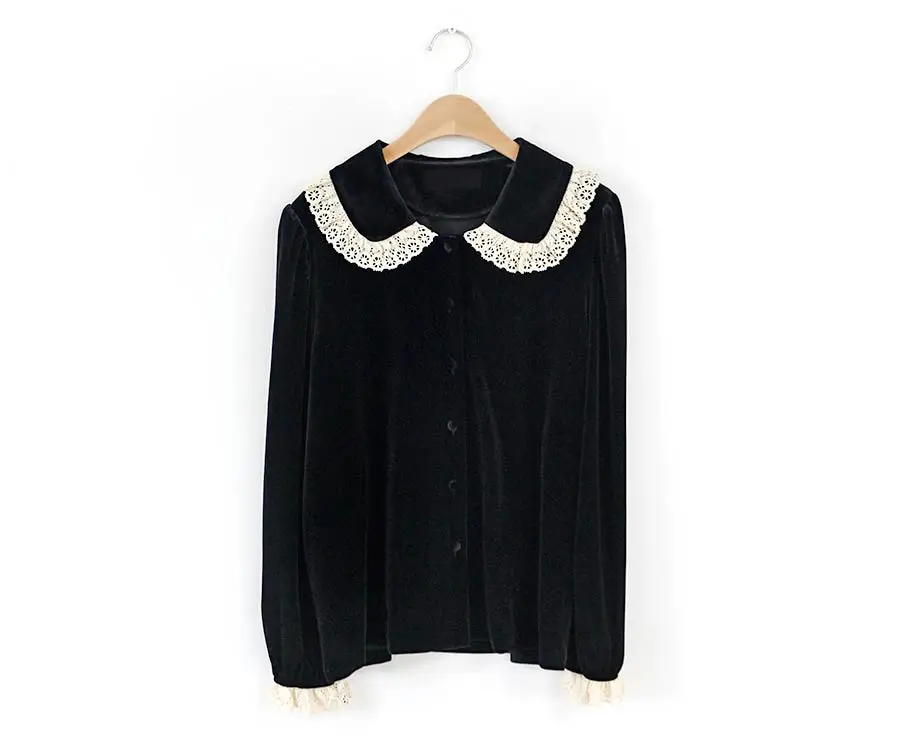 Милая женская рубашка с круглым воротником, кружевная белая блузка в стиле преппи, на пуговицах, винтажная, 1157