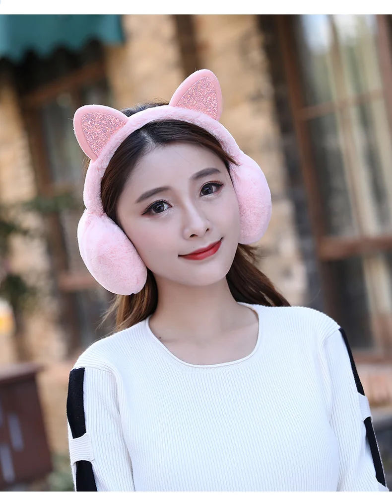 Новинка 2021, модные женские меховые зимние наушники для девочек, наушники с кошачьими ушками, наушники с блестками для кошек, Новинка