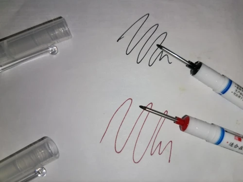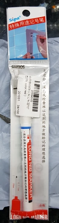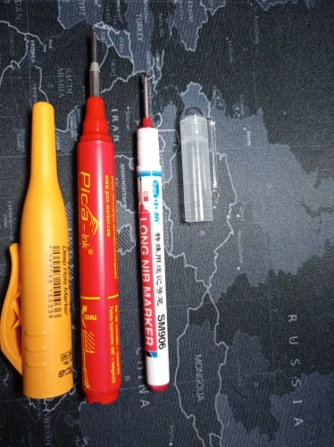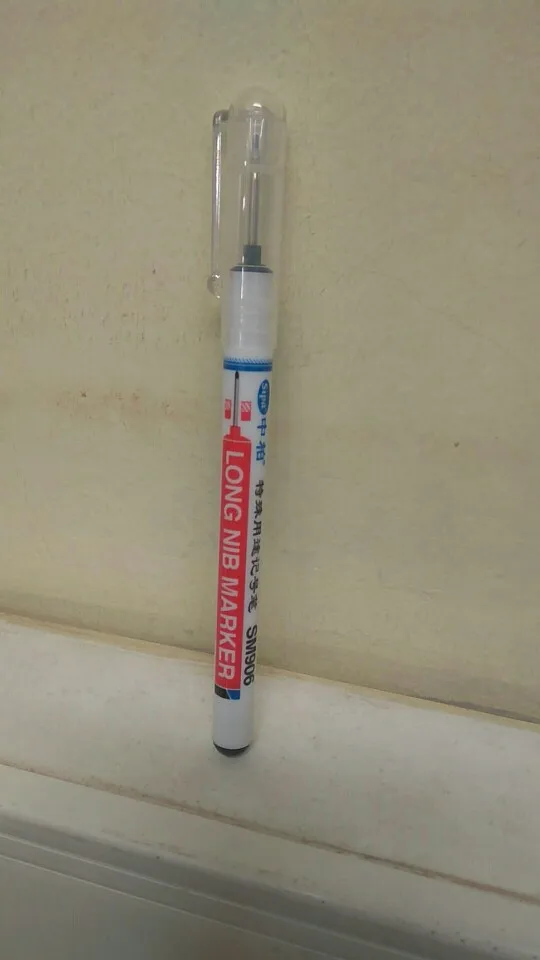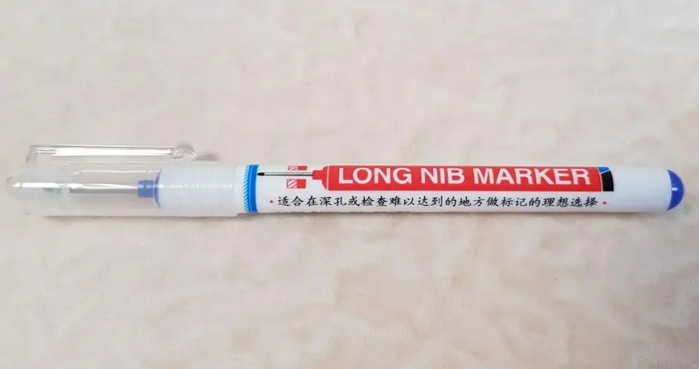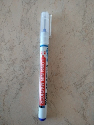 Маркер перманентный с удлинённым наконечником - удобно при черчении с толстой линейкой и рисовании, а также при разметке деталей в столярке. :-) Товар соответсвует описанию полностью. Покупкой доволен. Рекомендую товар и поставщика. Доставили в Москву за две недели в общей упаковке для нескольких заказов.