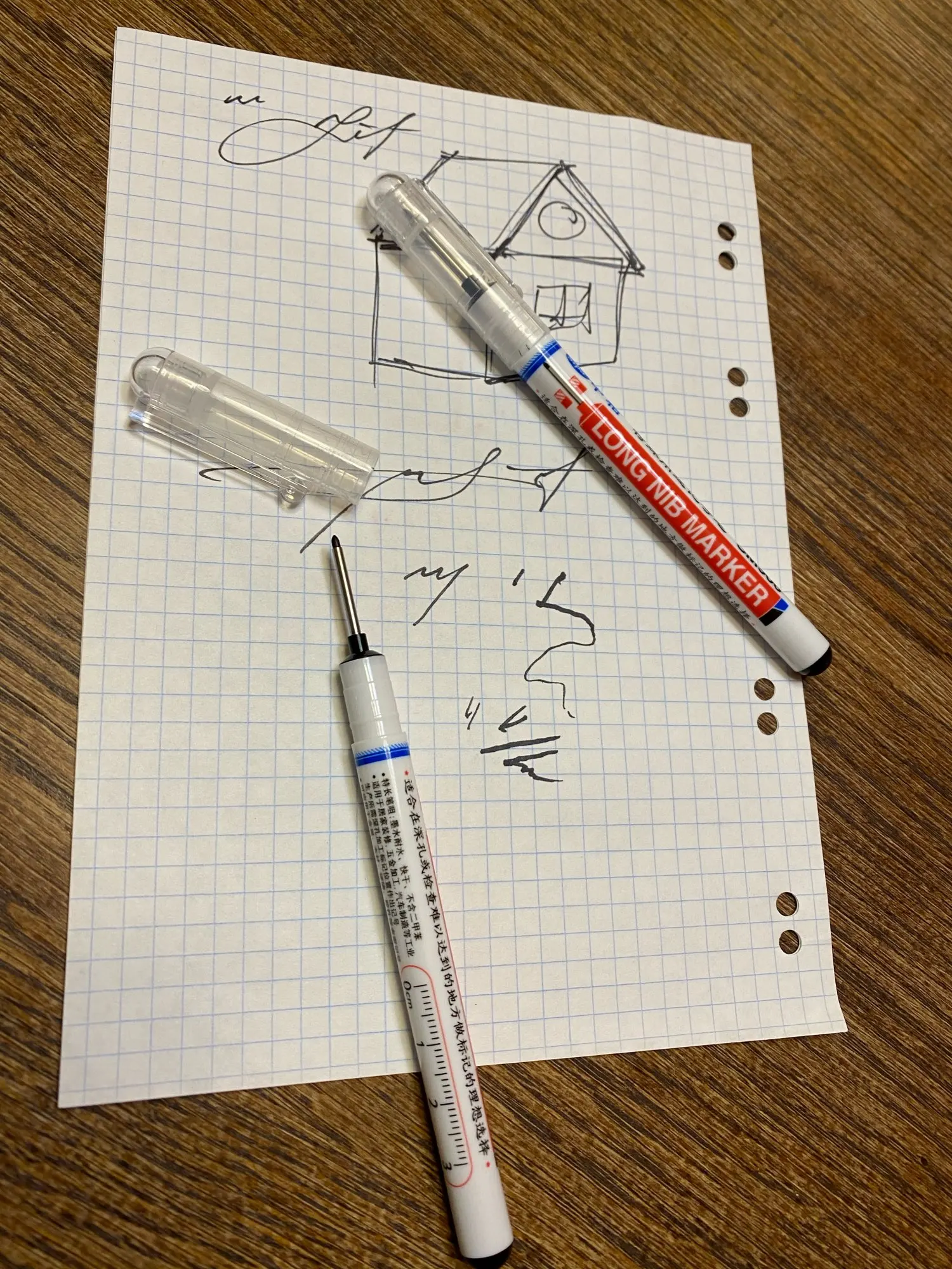 Маркер хороший, линия чёткая. Удобно отмечать в трудно доступных местах. Всё гуд.