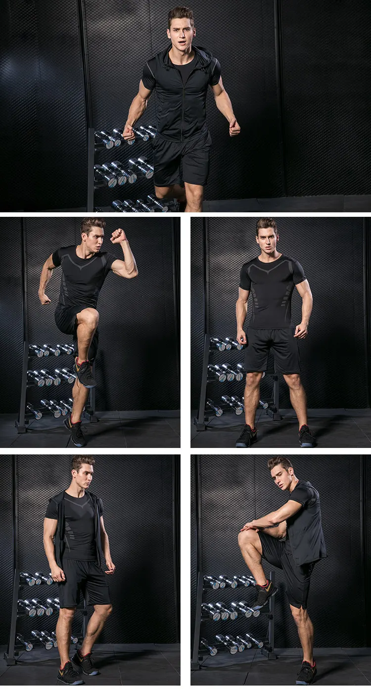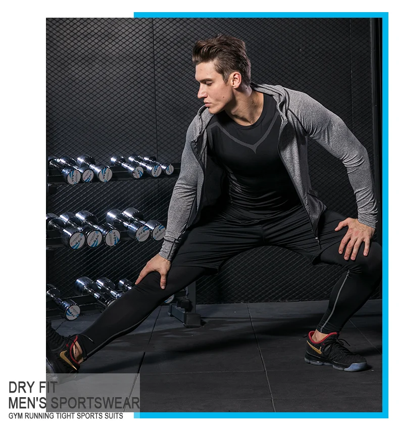 Мужской облегающий спортивный костюм, компрессионный спортивный костюм для тренажерного зала и фитнеса, спортивный комплект для бега, спортивная одежда для бега, спортивная одежда для воркаута