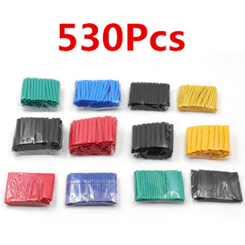 Термоусадочная трубка из полиолефина, 530 шт.компл., в ассортименте, термоусадочная трубка, изолированная трубка комплект трубок 2:1, водонепроницаемая трубка