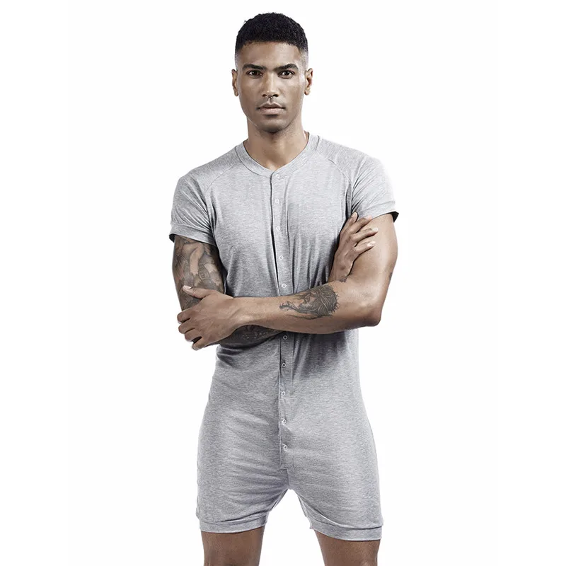 Комбинезон Пижамный мужской, однотонный, на кнопках, суперэластичный