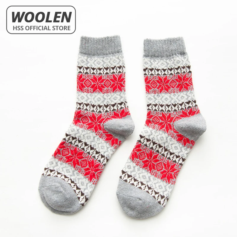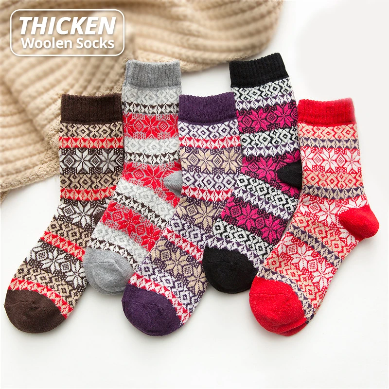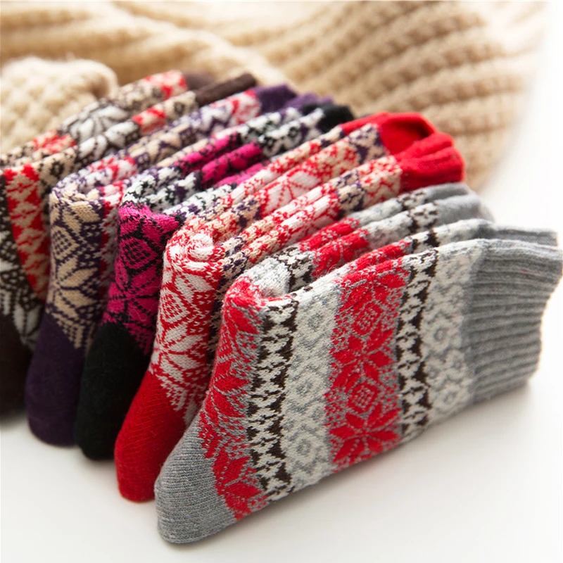 Носки женские зимние утепленные, хб, с узором в виде снежинок