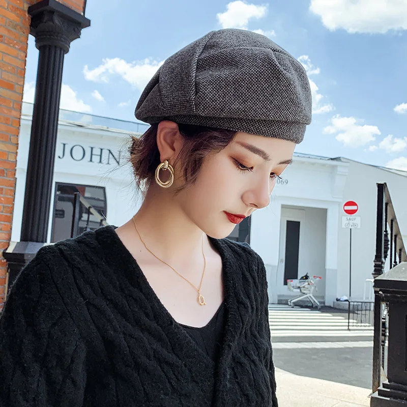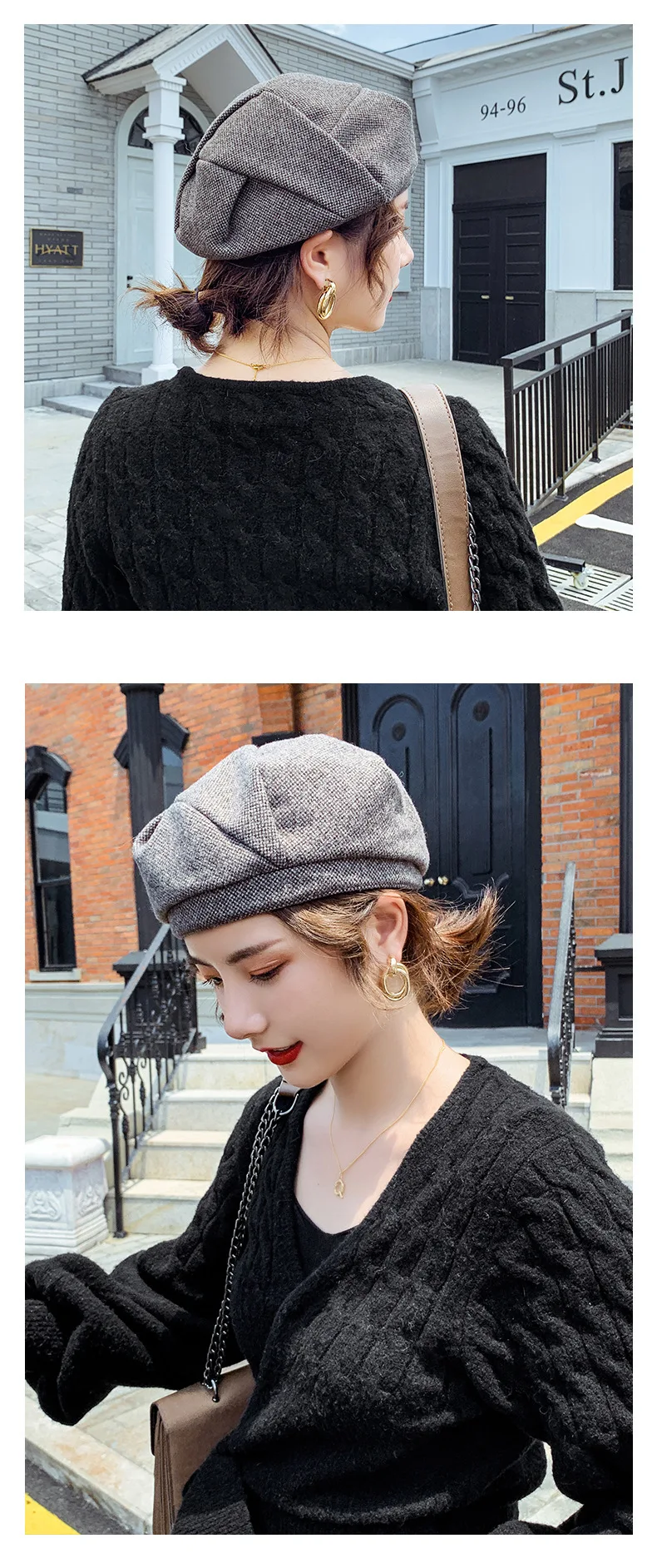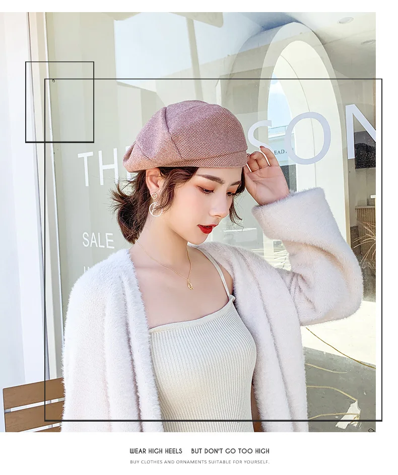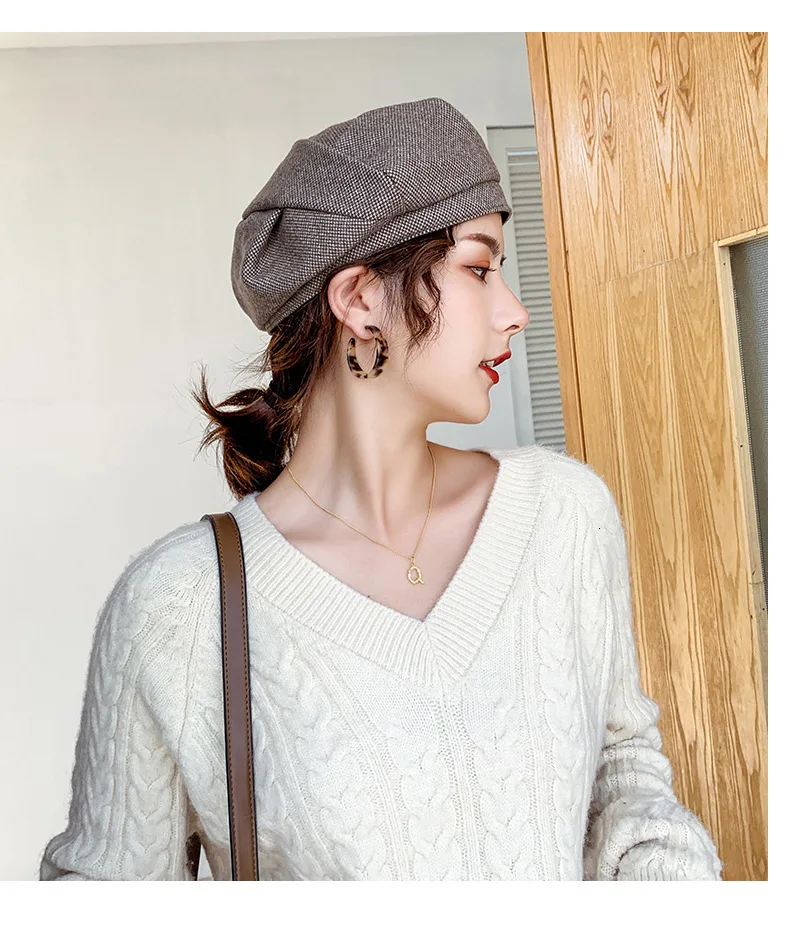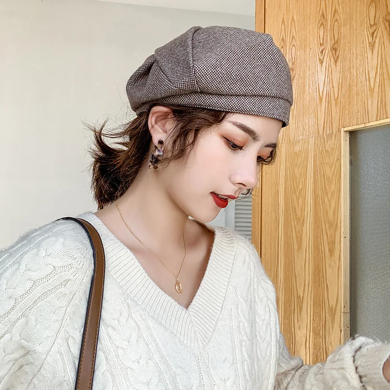 Берет шерстяной Женский, осенне-зимний, восьмиугольный, в клетку
