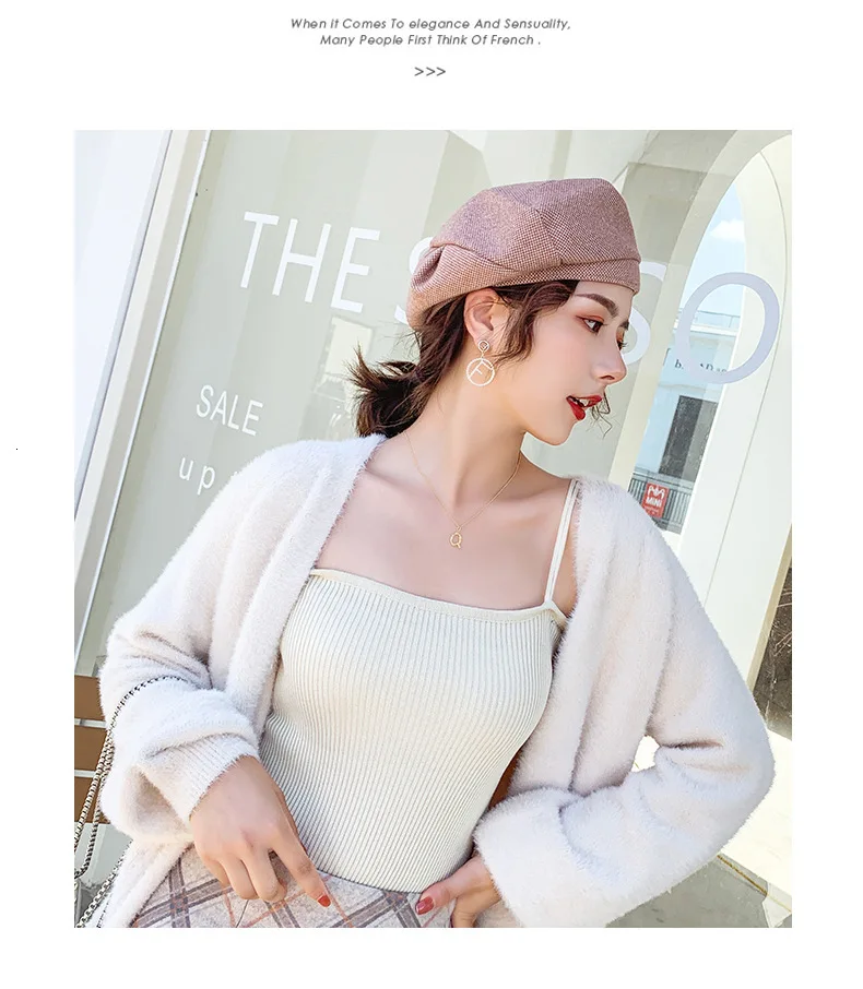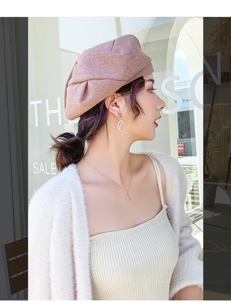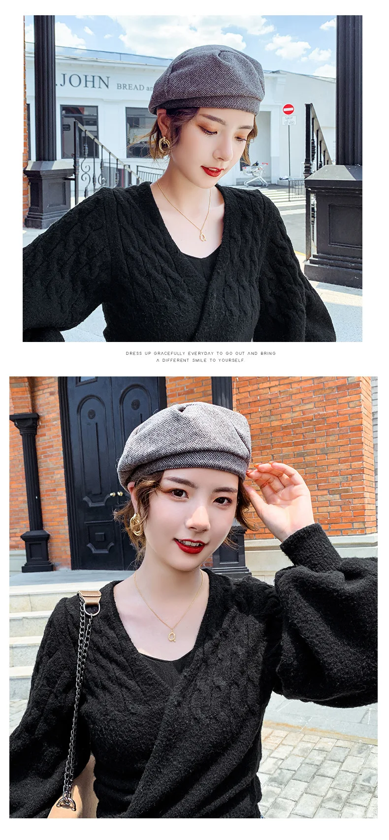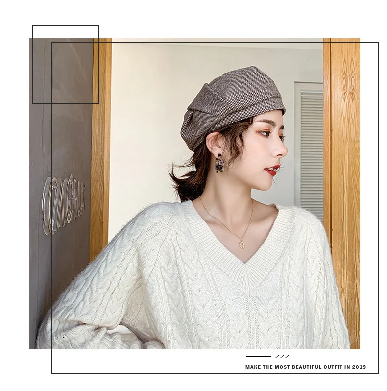 Берет шерстяной Женский, осенне-зимний, восьмиугольный, в клетку